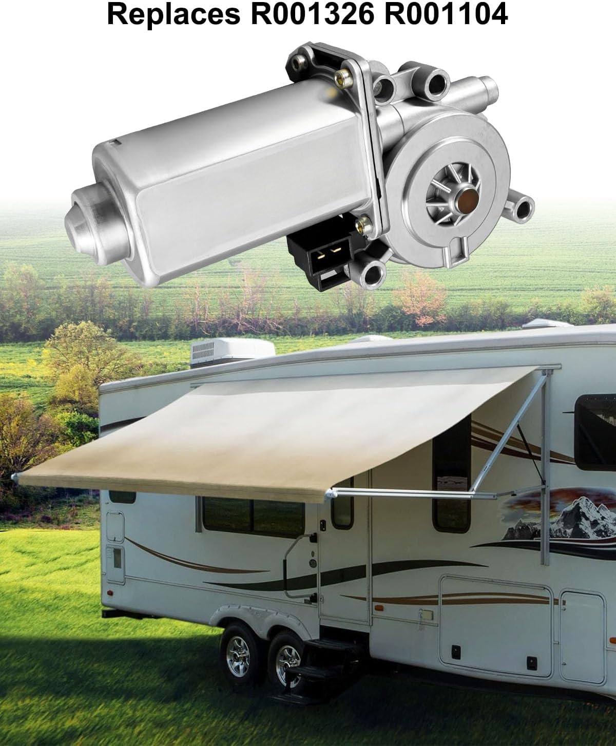 Why Choose the 12V RV Electric Awning Replacement Motor: Made with stainless steel and durable alloy materials, it can withstand frequent opening and closing, and vibration, making it more reliable than ordinary replacement parts The motor uses a worm gear drive design, which automatically locks when retracted, providing locking and stability Wind-resistant and stable, it ensures safer use Even in strong winds or on bumpy roads, the awning remains firmly in place, preventing slippage or rolling back Quickly restore the awning function with one click to turn it on or off; a single replacement makes the awning look brand new Easy to install, plug and play Compatibility and Adaptation: Compatible with Carefree Eclipse Power Awnings Replace Part Number: Replace R001326 R001104 Product Includes: 1 * Motor Installation Precautions: Avoid electric shock when wiring Avoid hand injuries during operation Avoid drops or impacts during installation Avoid tool injuries during operation Usage Precautions: Avoid awning pinching during startup Avoid motor overheating or short circuits Be vigilant to avoid slipping Avoid unexpected wind hazards