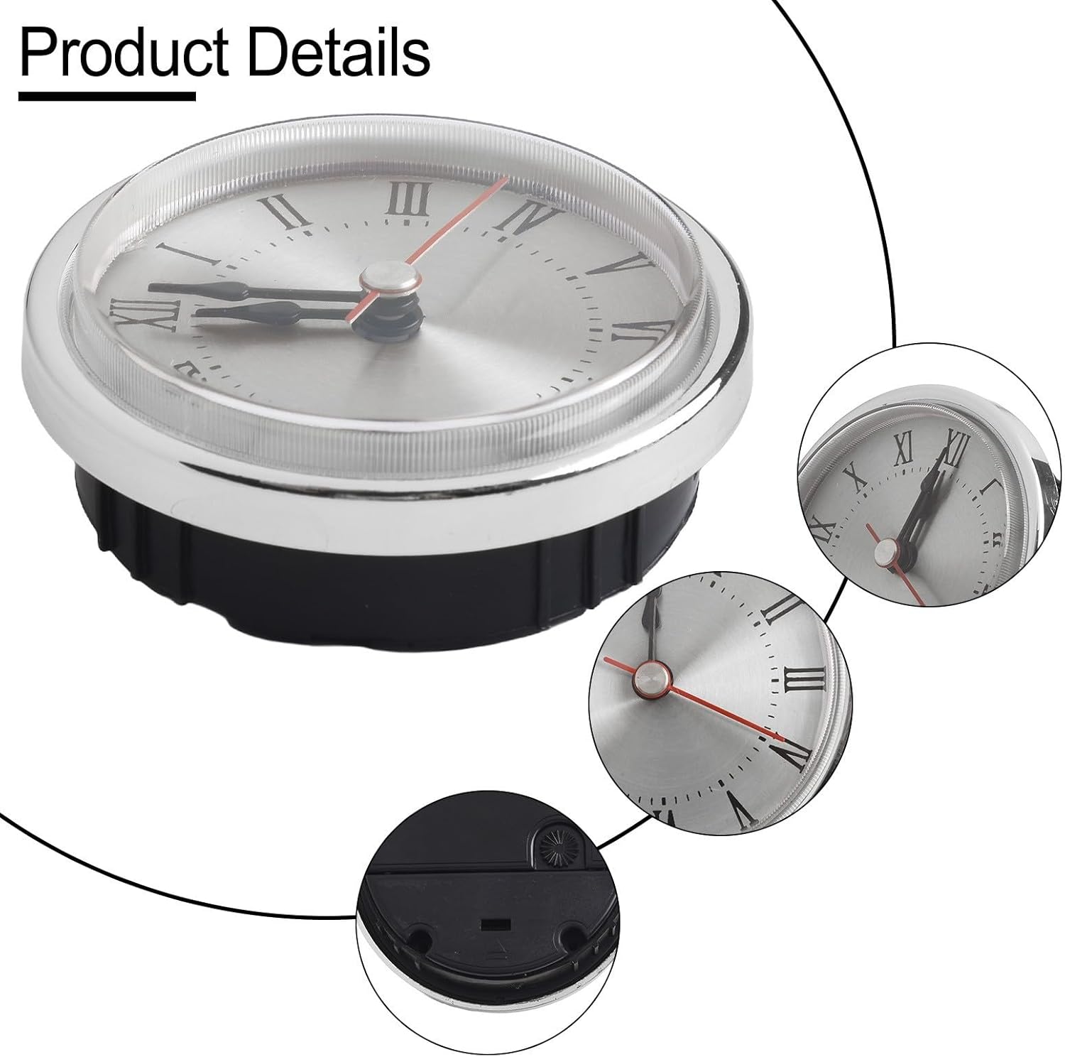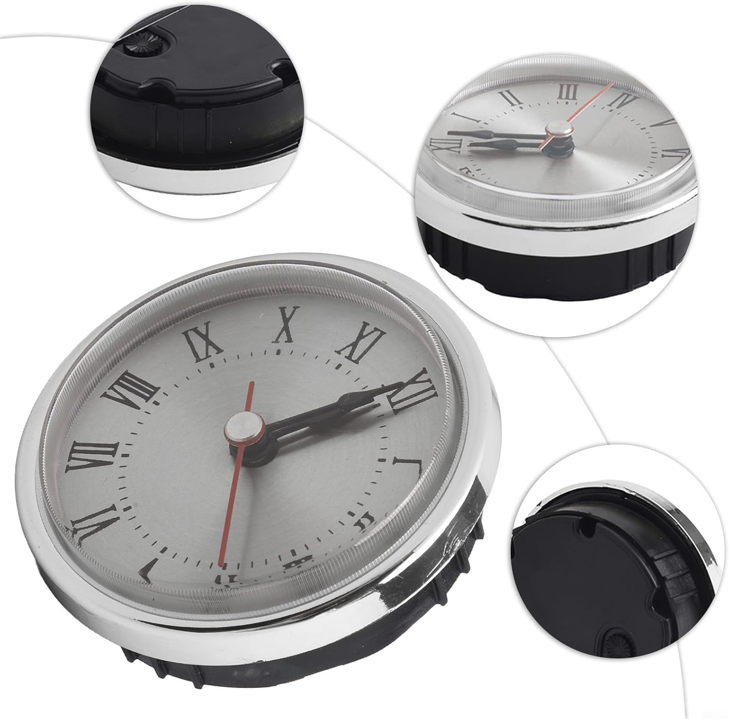 Features:*Roman Numbers Clock Inserts: This quartz clock movement insert comes with 1 practical piece, available in 2 different color including gold and silver. The obvious contrast makes the numbers stand out, allowing people to read the time quickly, meeting your daily needs.*Measurement Information: The total diameter of the Arabic numeral clock insert is 65mm, referring to the maximum external diameter including the colored border. Please check your clock size before purchasing.*Easy to Use: Powered by a 1.5V AAA battery(not included in the package), this adorable clock insert is simple and convenient to use. Additionally, there is a hole design on the back of the clock, allowing you to easily hang it on the wall or other decorative items, saving your time and effort.*Wide Application: The gold decorative insert clock fits many popular glass and craft clocks, suitable for crafts or replacing old clock faces. It can be used for wall decoration and other decorative items.Specifications:*Part Name:Quartz Clock Inserts Movement*Material:aluminum for*Size:65mm(total diameter)*Color:gold,silverPackage Content:1* Quartz Clock Inserts
