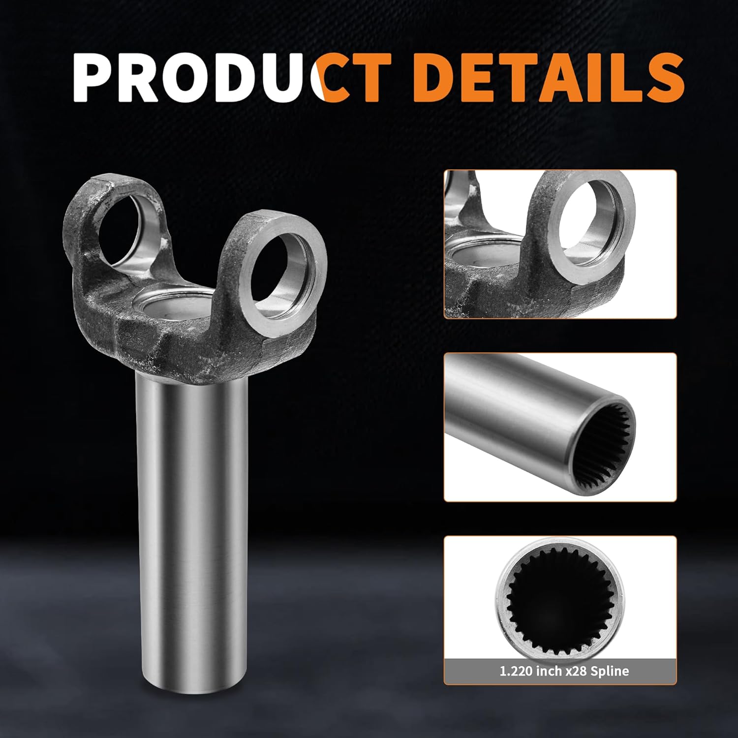 1310 Series Transmission Slip Yoke 2-3-4871X Specification: Universal Joint Width (L): 3.219'' Bearing Cap Diameter (D): 1.062'' Center Line to End of Spline (J): 6'' Hub Diameter (R): 1.5'' Spline Outside Diameter: 1.22'' Number of Spline: 28 Spline