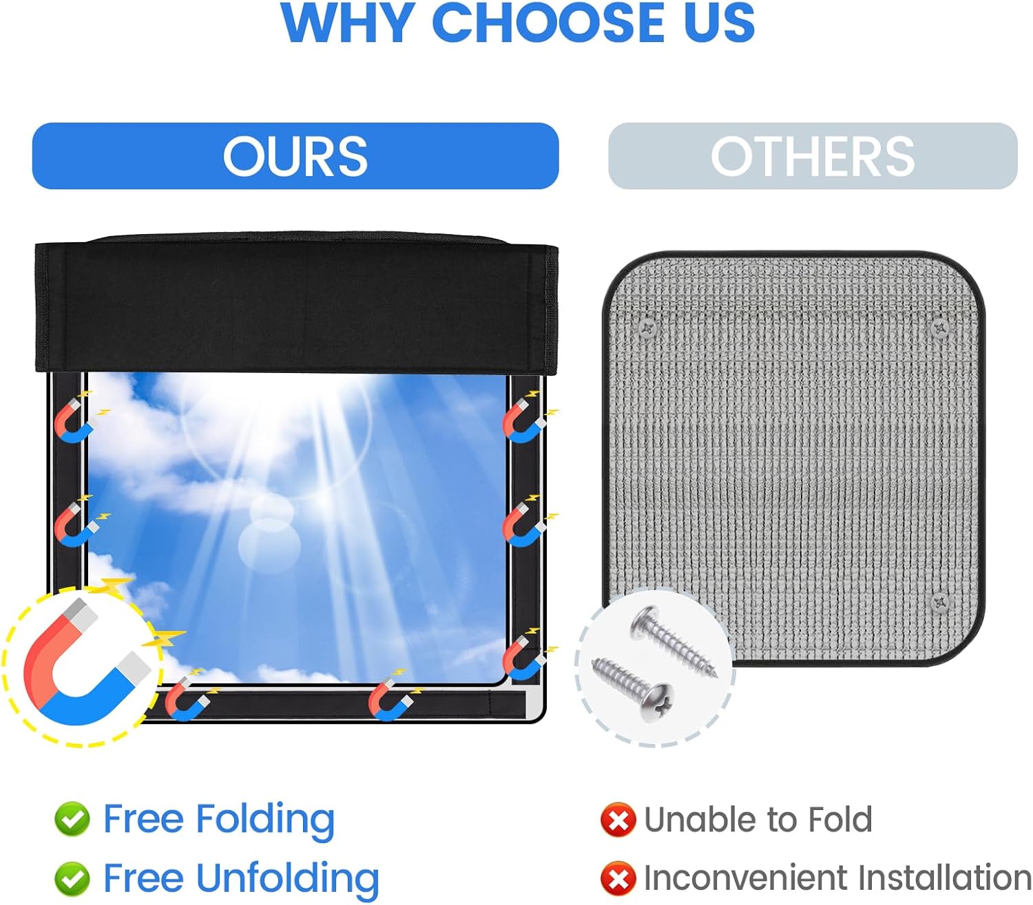 Funomo RV skylight window cover protects your privacy totally: providing comfort and privacy, especially in summer! Its Magnetic Collapsible design allows you to customize the blackout height so you can turn on ventilation fan at any time!
