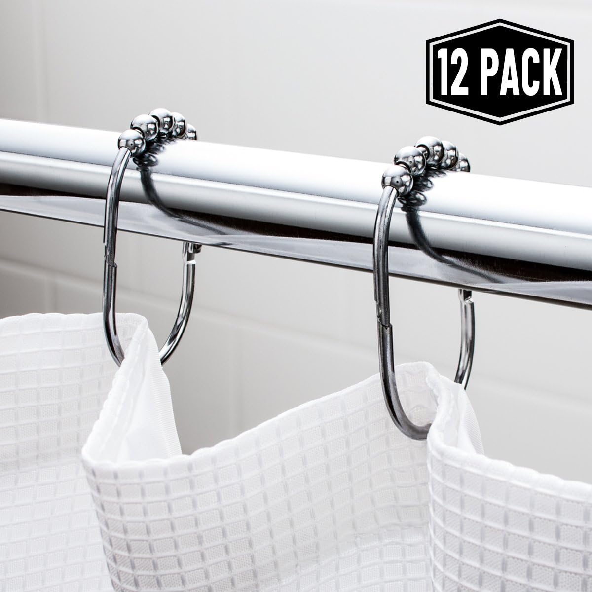 2 Lb. Depot Shower Curtain Rings Our premium quality 2 Lb. Depot classic easy glide shower curtain hooks / shower rings are built to last. These rust-resistant sets of 24 Polished Chrome & Black shower hooks are built with 5 rolling balls that allow the rings to glide easily along most straight or curved shower rods. Available in black, brushed nickel, polished nickel, oil rubbed bronze, chrome and gold finishes in our store. No matter the finish you choose, these unique shower curtain accessories will make a great addition to your bath or bathroom. Shower Curtain Rings Hooks Product Features: 24 Shower Curtain Hooks Rings Per Set Premium 304 18/8 Stainless Steel, Rust-Free / Corrosion-Free Polished Chrome & Black Finish Locking Design Holds Shower Curtain and/or Shower Liner Friction Free, Gliding Action Easy Installation 2 Lb. Depot's high quality rustproof stainless steel shower curtain hooks look beautiful in any bathroom. Simply unhook the hinged shower curtain ring, slide the curtain and liner through and re-hook. You're done! These shower curtain rings look beautiful in any bathroom — whether your style is modern, rustic or traditional.