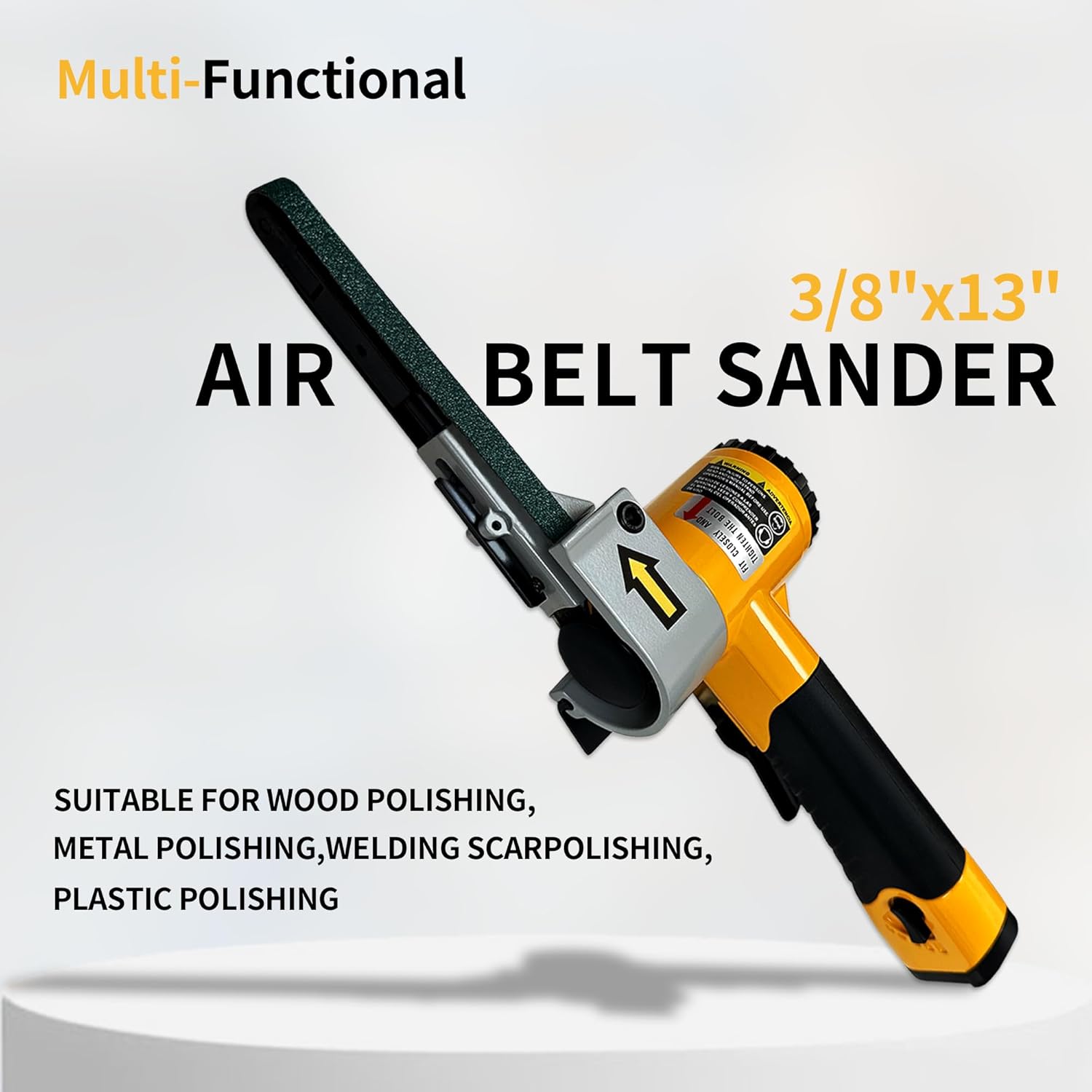 Gutsy Jumper 3/8" x 13" Handheld Pneumatic Belt Sander is a high-efficiency, durable professional sanding tool designed for metal deburring, weld polishing, and surface finishing of aluminum, iron, and steel. With its compact body and powerful pneumatic performance, this belt sander can easily handle high-intensity industrial tasks while ensuring precise, smooth grinding results.