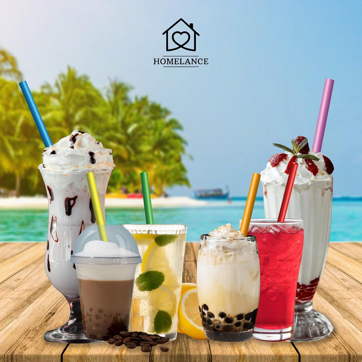 Indulge in your favorite thick smoothies and bubble teas with our 9.84-inch long wide straws disposable! Made from food-grade material, these extra-long and wide plastic smoothie straws (0.43 inches/11mm diameter) are perfect for frozen smoothies, thick milkshakes, jelly, and other homemade treats. Jumbo straws individually wrapped available in assorted bright colors, these cute and durable jumbo straws disposable are ideal for kids and adults alike. The angled tips make it easy to puncture bubble tea tops, and the large straws disposable can be cut to fit smaller cups. Plus, they're easy to clean and reuse, or use once and dispose of - making them a convenient and fun addition to your beverage routine.