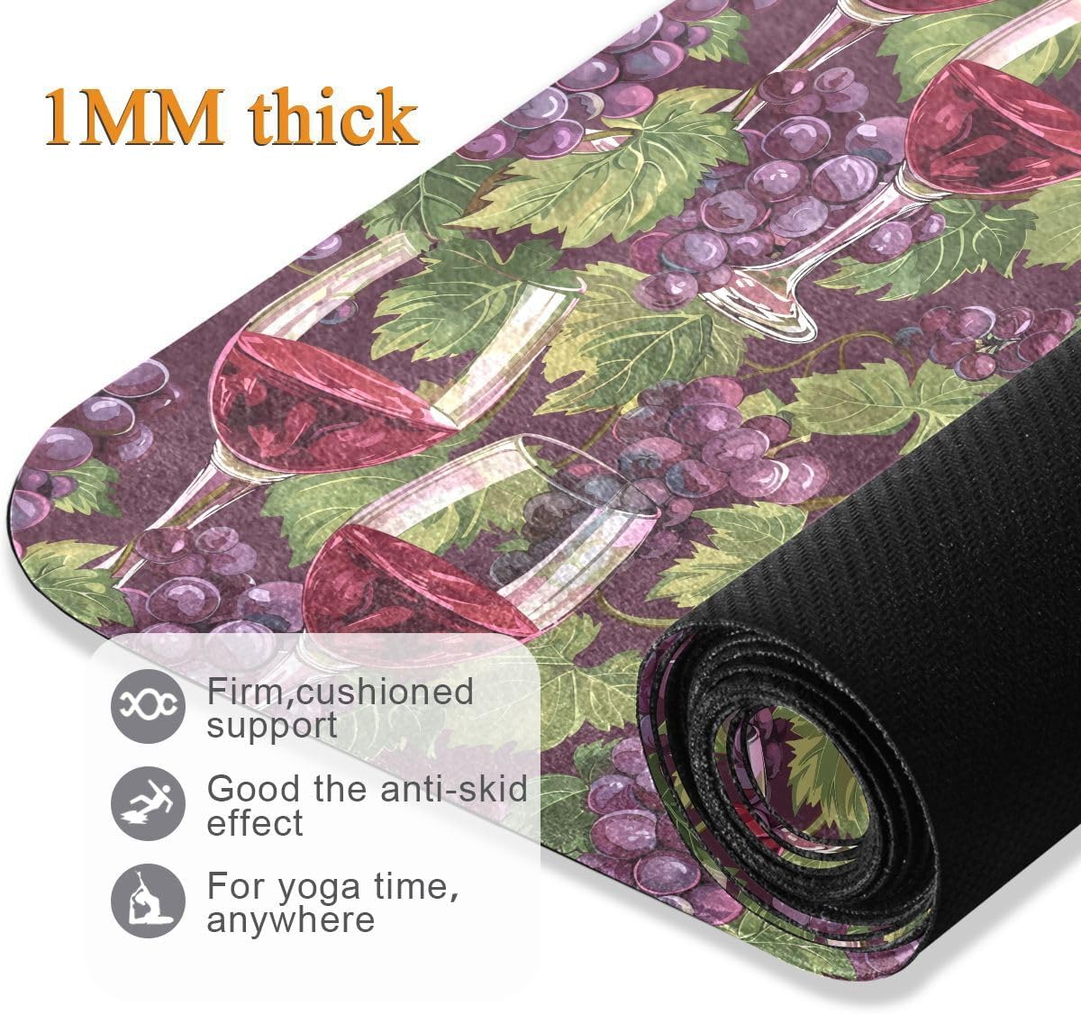ALAZA Red Wine Glass Grape Seamlss Yoga Mat Non Slip Fitness Exercise Mat, Workout Mat for Yoga, Pilates and Floor Exercises