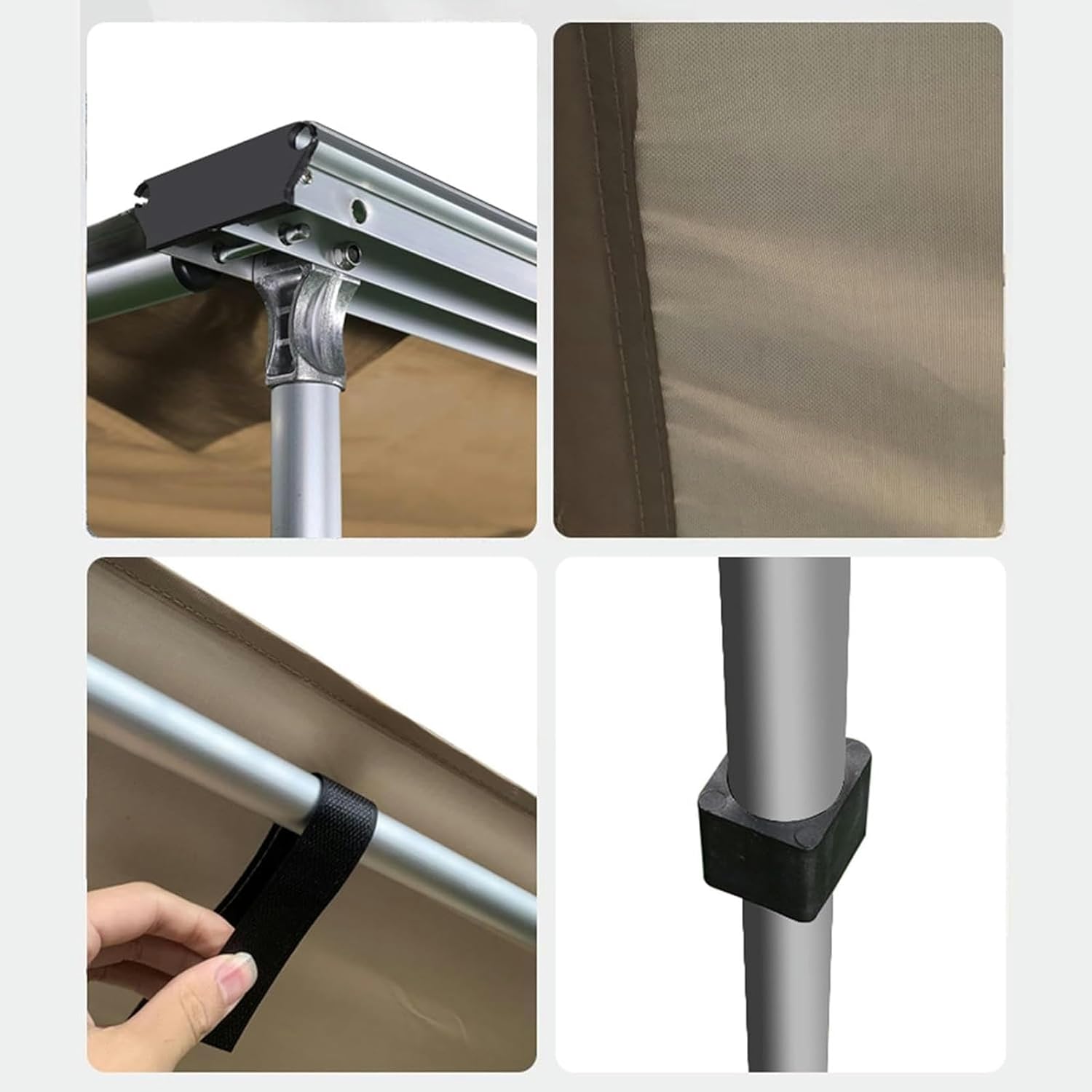 CharacteristicWaterproof and sunscreenDurableEasy installationUniversalAdjustable heightEasy to storeLed lightsSpecificationColour khakiMaterial: encrypted oxford fabric + aluminum alloyTotal size (displayed): 160x250cm, 200x200cm, 200x250cm, 250x250cm, 200x300cmAdjustable height: 110 cm ~ 210 cmPackage contents1 x lateral parasol.2 x L -shaped assembly supports2 x I i -shaped assembly supports4 x long screw kit4 x short screw kit2 x keys.2 x metal stakes.►NOTA:1. We are measuring manually, there may be a 1-3 cm error, prevail in kind.2. If you have any questions, you can contact us by email, we will answer within 12 hours.