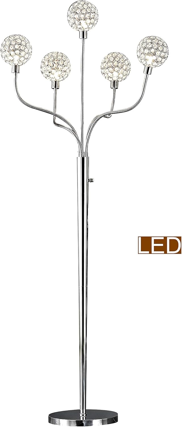 Light up your living room, bedroom or office with the "Soho II" 5-Light Crystal Balls Chrome LED adjustable Floor Lamp from Aritiva USA. Its clear handcrafted crystal balls shine/sparkle beautifully in the light, providing a warm and inviting tone to any room. This lamp is perfect addition to your home. It features an adjustable Gooseneck t(360 degree)that allows you to spread the light anywhere you want it to be, and a full-range dimmer for your convenience. Featuring exclusive True 360-degree view five 5W G9 LED Dimmable bulbs included. Will transform any room to whole difference World. Perfect conversation piece.