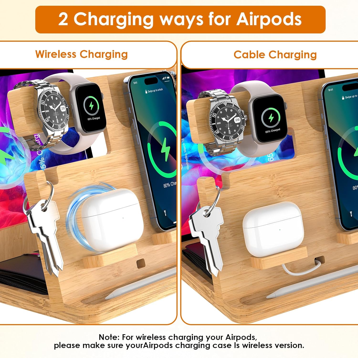 | Additional Features | bamboo wireless charging station, charging station for multiple devices apple, phone and watch charging station, wireless iphone charger stand |