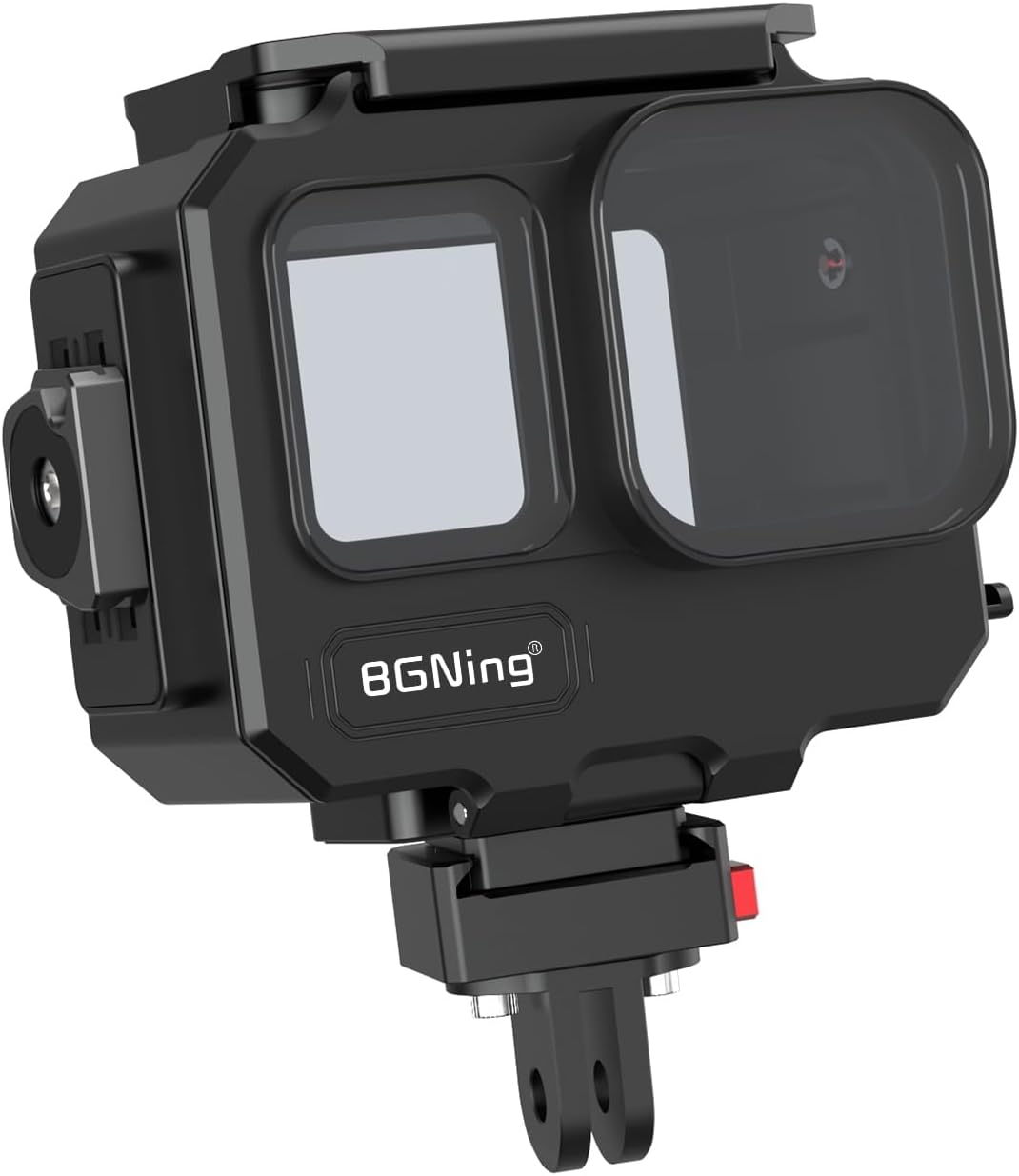 BGNing Multi-Expansion Waterproof Housing, Compatible with Insta360Ace pro/Ace Pro2 Cameras, 262 ft/80 m Underwater Protective Dive Housing with 1/4 ARRI-Standard Positioning Hole Made of sturdy and corrosion-resistant aluminum alloy, it can withstand uncertain outdoor environments. High transmittance tempered glass, clear image, can withstand 80M deep water pressure. With 1/4 ARRI-standard positioning hole, M3 screw holes, cold shoe mounting base, front and side of the quick release magnetic base, compatible with a variety of use scenarios. type 2, add the hidden two card magnetic base, can be quick release. type 3, add quick release base with two cards for quick release. type 4, add two cards, can connect three cards. type 5, add one inch ball head, can be used with ball head accessories.