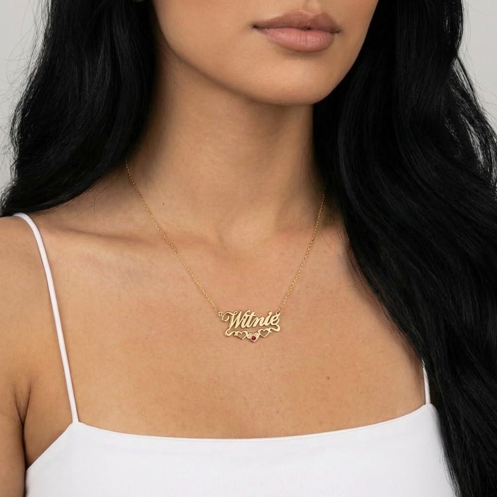 • ✅ Custom Engraved Name Necklace with Birthstone – Personalize this elegant heart pendant with any name and a sparkling birthstone. A meaningful piece of custom jewelry gift for her.