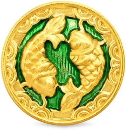 Two fish frolic amidst flowing waves, harmoniously blending gold with vibrant green enamel, symbolizing abundance, harmony, and the timeless blessing of 'year after year surplus'. The Palace Museum Collection weaves together tradition and memory to create timeless masterpieces that can be cherished for generations. Gold pendants are crafted with Chow Tai Fook signature 999.9 Pure 24K Gold introduced since 1984. Weight: Approximately 1.40 g. Size: Approximately 1.35 X 1.35 cm (0.53 X 0.53 in). Chow Tai Fook jewelry box is included.