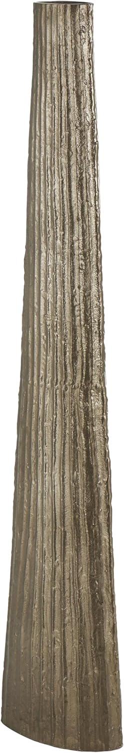 Floor vase can be used as a standalone decor piece to add height and drama to any room. Designed with felt or rubber stoppers at the base that prevent scratching furniture and table tops, as well as sliding around. This item ships in 1 carton. Suitable for indoor use only. This item ships fully assembled in one piece. Made in India. This is a single silver colored vase. Glam style. Vase has a 4.80 in mouth opening.