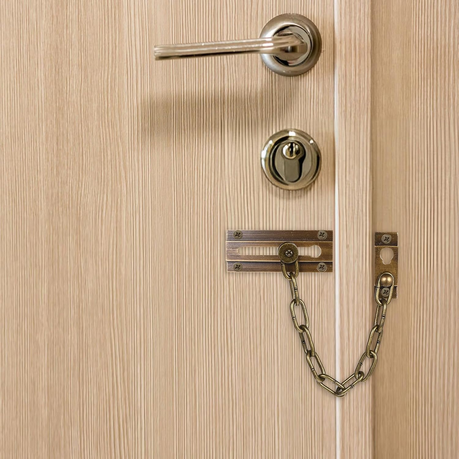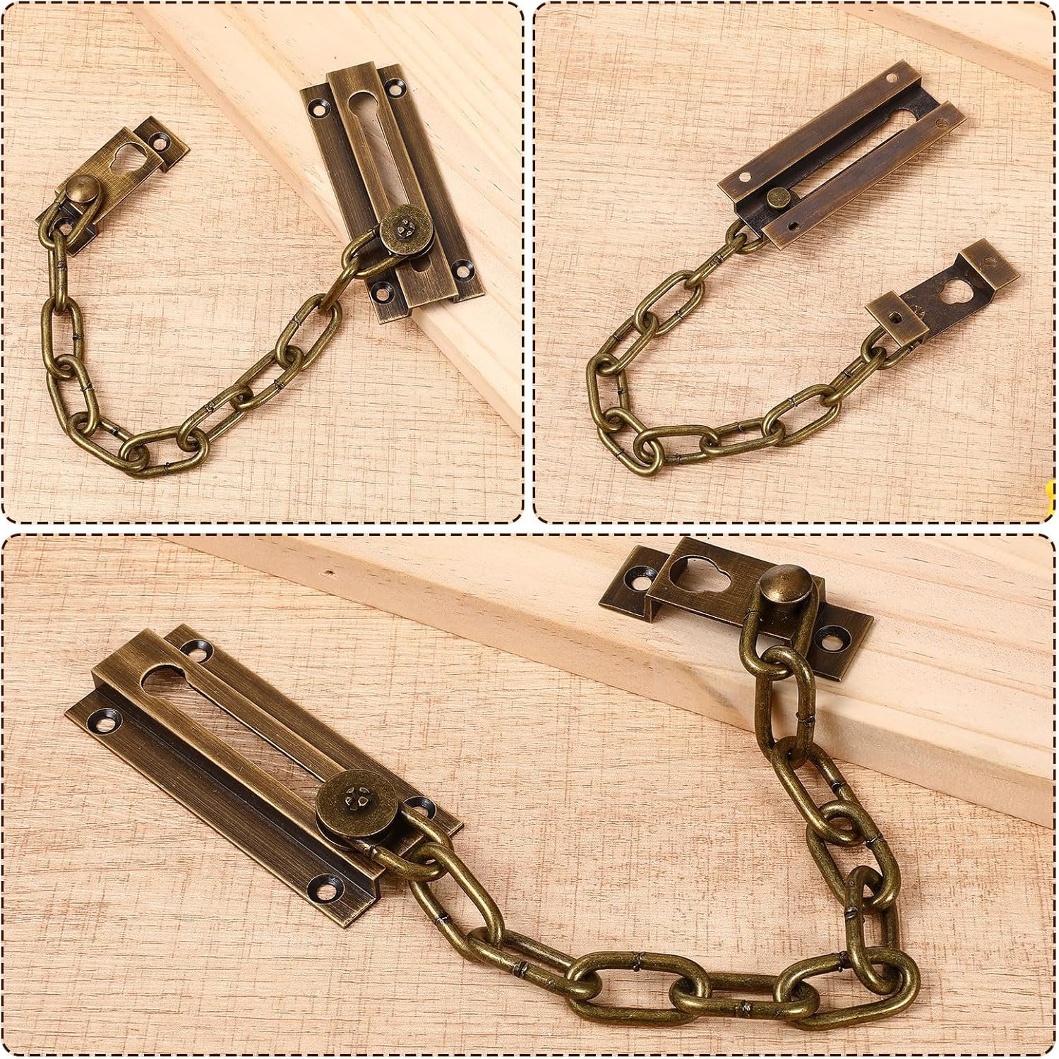 Description:Product name: chain locks for inside doorColor: vintage colorMaterial: brassProduct size: 8.6 inches (22 cm)Packing list:1 pcs door latch sturdy premium thickened chain locks