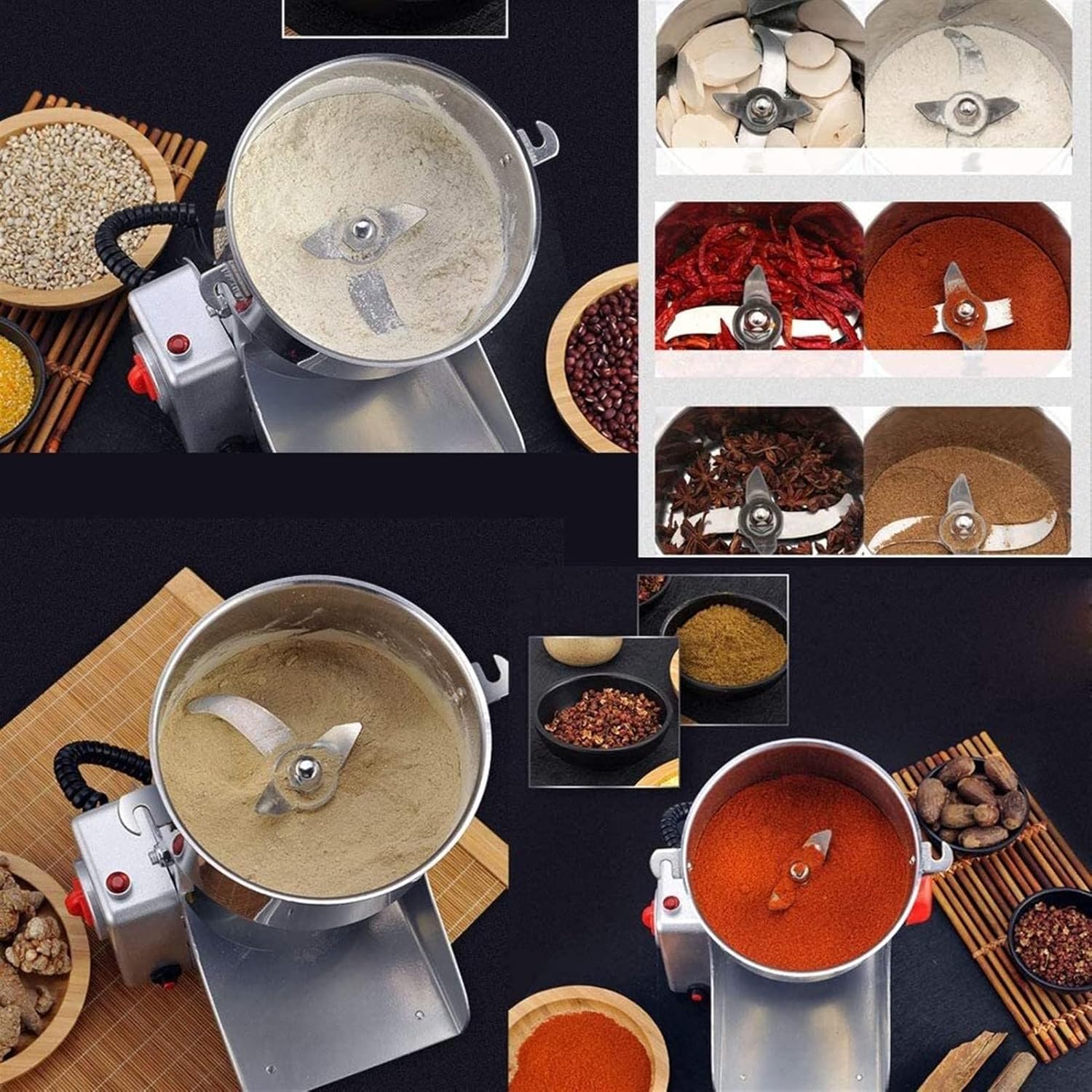 Capacity: 700g (measured in rice volume 1000ml) Motor: high speed high quality motor Material: food grade high quality stainless steel Working time: 0-5 minutes Interval: 5-10 minutes Crushing degree: 30-300 mesh