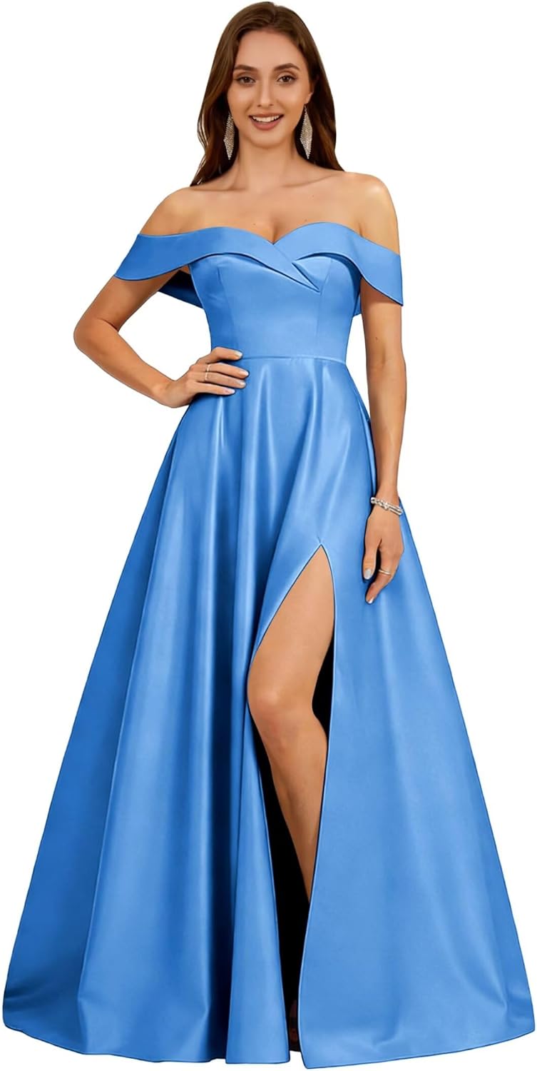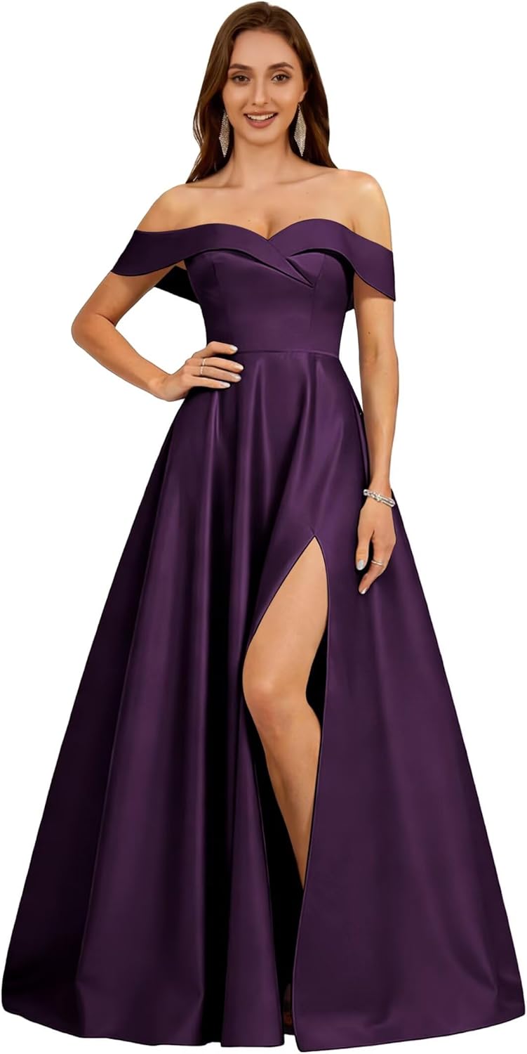 1.Thank you so much for coming to our shop. Hope you could get the fit dress you want. 2. This dress is in exquiste design, you will look so gorgeous in this dress in your big day . 3. Adequate colors and size from 0--28W are available according to your will. Fashionbride Off The Shoulder Prom Dresses 2026 A Line Satin Bridesmaid Dress with Slit Long Pleated Formal Evening Dress with Pockets For accurate measurements of Bust, Waist, Hips and Hollow to Floor, please kindly refer to our Size Chart. If standard size is not fit for you, you can send us your measurement details as list 1. Full Bust _____ inch or ___ cm 2. Waist _____ inch or ___ cm 3. Hips _____ inch or ___ cm 4. Shoulder to Shoulder ____ inch or ___ cm 5. Hollow to floor(Shoulder to Feet without shoes) ___ inch or ___ cm 6. The height of your high heel shoes: _____inch or ___ cm 7. The date you need the dress The real color of the item may be Slightly different from the pictures caused by brightness of your monitor and light brightness Due to manual measurement, please allow a 1-3cm difference. If you have any other question,please contact us freely, we'll try the best to service you