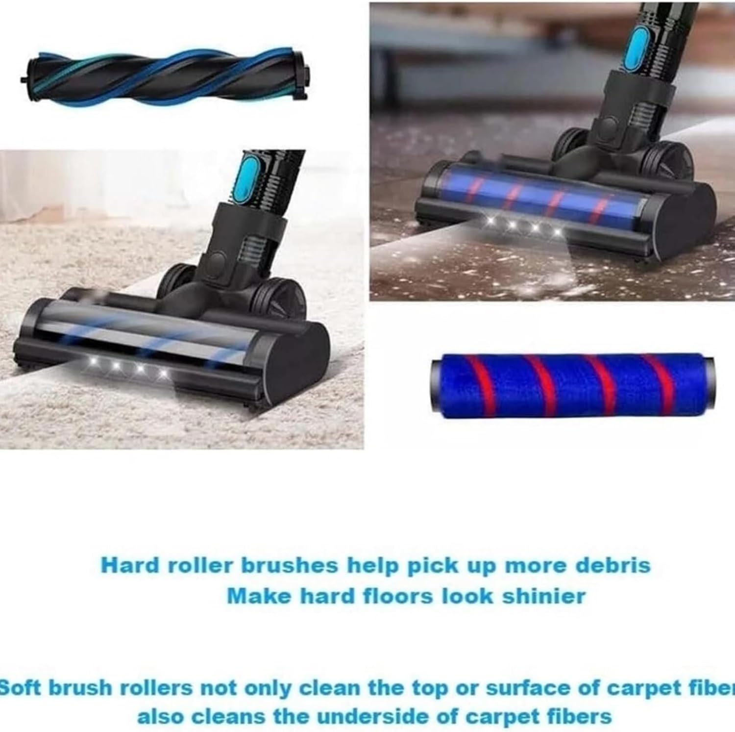 The hard roller design is optimized for hard floors and carpets: it glides smoothly over hardwood floors, tile and laminate to pick up fine dust, while its bristle construction penetrates deep into carpet fibers to remove embedded dirt and pet hair.The LED light illuminates dark corners, underneath furniture and baseboards to ensure no crumbs are missed during the cleaning process.