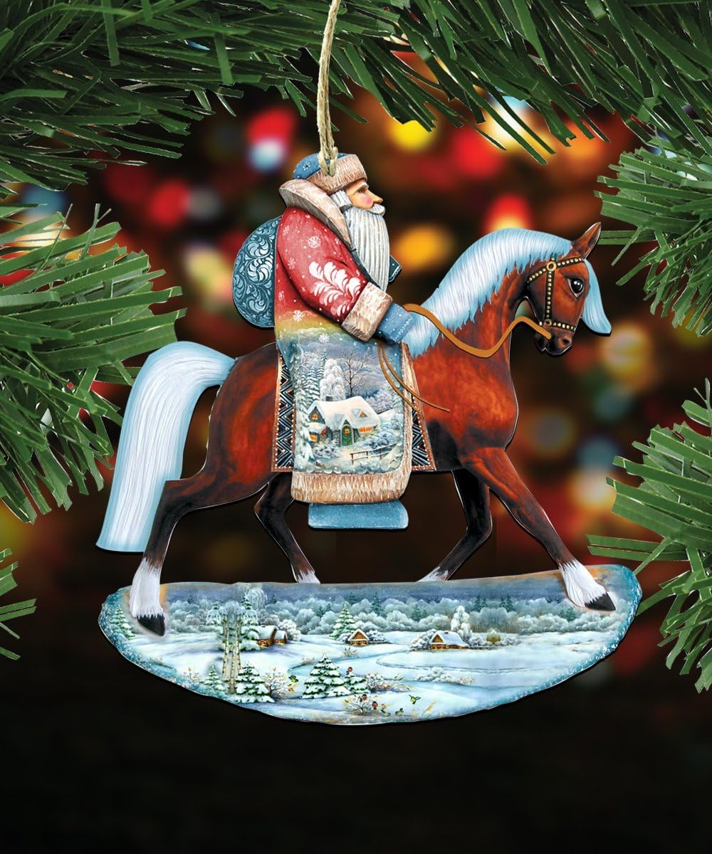 Santa, Horse, Reindeer, Grizzly Bear - Handmade Wooden Vintage Wooden Christmas Ornaments are the perfect added touch to your home Décor. Perhaps this ornament is your favorite, but don’t miss out and visit us to explore the complete collection at the official G. Debrekht Holiday Shop. About Collection: The Sets of “Keepsake Wooden Ornaments” are hand-crafted with the utmost attention to detail and, inspired by G.DeBrekht's old art technique & designed from the best quality Birch Plywood. The ornaments are the perfect addition to the Holiday Home decoration or the ideal addition to your DIY project. Decorating a home is a particular time for all families, so create your holiday gallery for all your friends and family to enjoy by collecting the unique style of G.DeBrekht Artistic Studios. Please check out our collections which include - classic Christmas art, Winter wonderlands, and Nativity Art- all of which are available in approximate size: 5” x 5.5” x 0.25”. This product is made from high-quality plywood, which makes it both sturdy and lightweight. UV protective coating makes this product weather resistant so it can be used indoors and outdoors. The Sets come in a Gift Box. 100% hand-crafted in the USA
