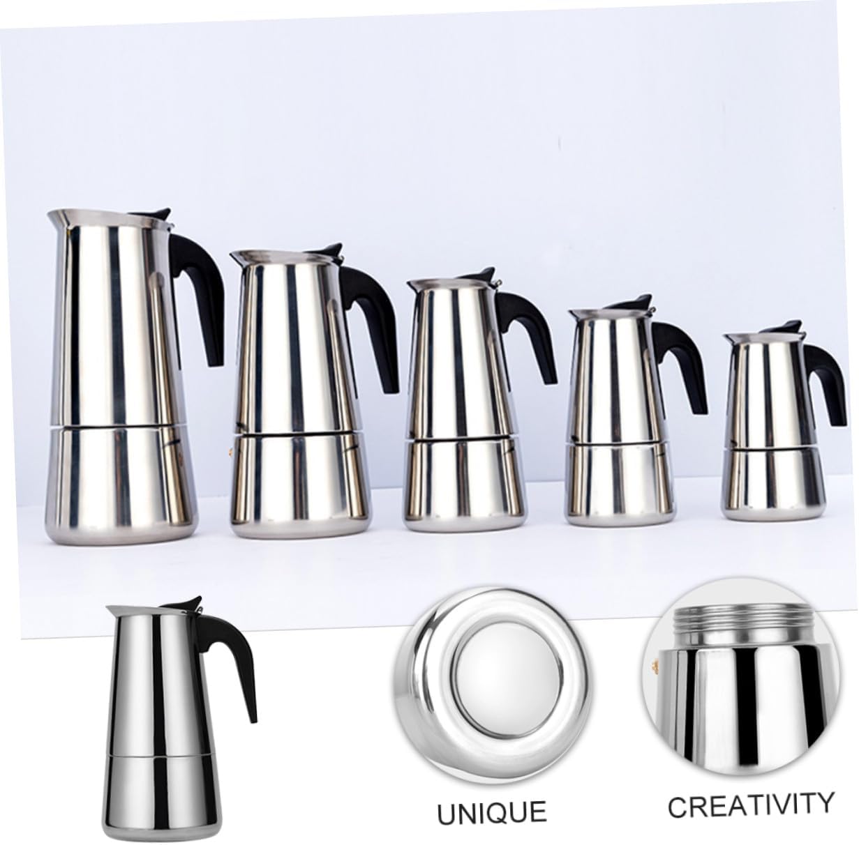 Package Include 1 x Coffee Pot Features -Color: Silver Mocha Coffee Maker. -Capacity: 12 Cups, 600ml Household Coffee Pot. -Size: About 25.00X11.30X11.30cm/9.82X4.44X4.44in Home Coffee Pot. -Material: Stainless steel Kitchen Accessories. - It’s easy to use, store, and clean. Excellent for both as a home coffee maker or office coffee maker. Stovetop Coffee Pot - Suitable for induction cooker, open fire, and other heating appliances. Stovetop Coffee Brewer - The handle keeps your hand comfortable, assures easy handling, and allows for an even pour every time Mocha Coffee Pot. - High- food grade stainless steel body is food , sanitary, and . The excellent manufacturing process enables it to have performance Stainless Steel Coffee Pot. - Lightweight design, portable to use. Easy to use, and it can bring much convenience to you Coffee Maker Pot.Goods InformationStovetop Coffee Maker With this handy coffee pot, you can enjoy fresh coffee.Coffee Maker Pot It is a choice as a people who like drinking coffee.Coffee Pot Unique shape design makes it more special and attractive to people.Stainless Steel Coffee Pot This coffee pot is made of material for and long time use