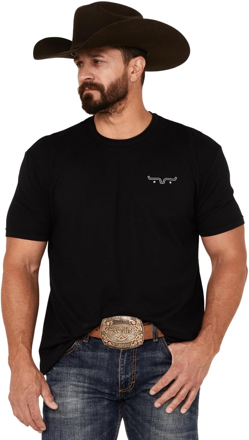 Experience the perfect blend of comfort and style with our Kimes Ranch American Bullseye Black T-Shirt. Crafted with a 60% cotton, 40% polyester blend, this shirt offers a relaxed, loose fit, ideal for both casual wear and outdoor activities. The crew neck and short sleeves ensure a comfortable, breathable wear, perfect for spring and summer seasons. The American Bullseye theme is prominently featured in embroidery, adding a unique touch to this Western-style tee. Machine washable and tumble dry friendly, this durable shirt is designed to withstand frequent wear, making it an excellent choice for cowboys, cowgirls, and anyone who appreciates a blend of fashion and functionality.