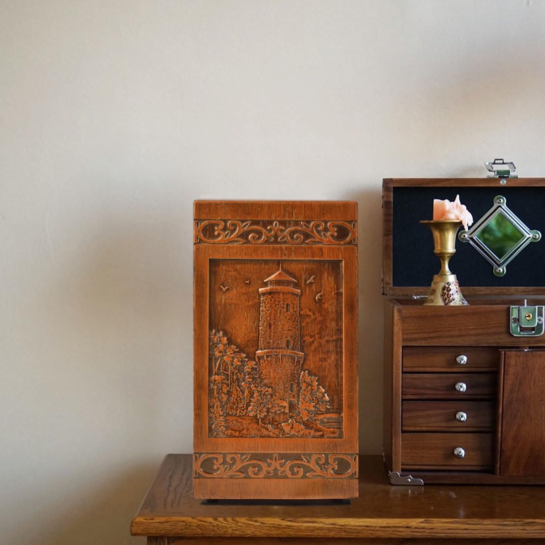 CUSTOMER SATISFACTION - KIMNAG WoodenCrafts is a family owned business and treats every customer like family. Wecare about our buyers and we want them to be 100% satisfied with theirpurchase. Urns are crafted from high-quality wood,designed with years of expertise and craftsmanship for enduring strength anddurability. This urn is the perfect memory of your life and love together. Italso makes a touching gift for the family who want to permanently honor thememory of the deceased. Size:Overall Size: 11.2H x 6.1"L x6.1"W Approximate capacity: 250 cubic inches