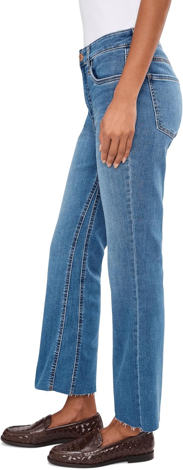 Laid-back with the perfect amount of edge, the KUT from the Kloth Kelsey High-Rise Fab AB Ankle Flare-Nset Leg is cropped with just the right amount of flare. The Kelsey is fitted through the hips and thighs and finishes off with a cropped kick flare for a modern take on the classic silhouette. Complete with belt loops, zip-fly, and button closure. Relaxed fit and high-rise waist. Five-pocket design. 89% cotton, 10% polyester, 2% elastane. Machine washable. Imported.