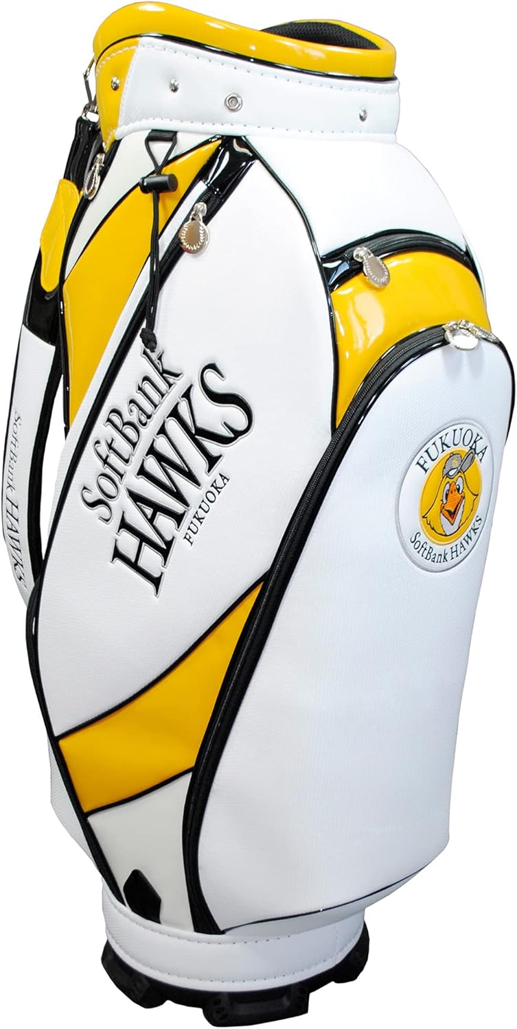 Fukuoka Softbank Hawks 2022 Model 9.5 Type Caddy Bag Spherical colored synthetic leather with embroidered spherical logo for a luxurious look. It has 9 pockets placed in various locations for ample storage. Ball pull and molded handle Includes hood cover, shoulder strap and name tag