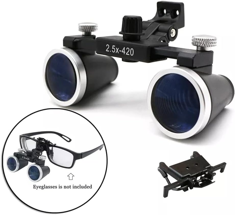 Product description:The wide field of view, large depth of field, and high magnification are sufficient for daily use.Long working distance.Complete edge-to-edge sharpness. Lens edges and all internal metal and plastic surfaces are darkened to maximize image contrast, resulting in exceptionally sharp, , clear and bright imagesCan easily cut into your glasses.A mount is included so you can attach the magnifier to your own glasses.Product parametersMagnifying glass material: optical glassMagnification: 2.5xDepth of field of view: 90mm (2.5x)Field of View: 100mm (2.5x)Working distance: 320-420mmPackage Included:1 x magnifying glass (other demo products not included)Notice:1. Due to manual measurement, please allow 2-3% error.2. Due to different monitors, the color may be different, please understand.3. Includes magnifying glass only, not headlights, frames, glasses or any other part of the picture.Experience highdefinition viewing and the convenience of a rechargeable battery with this compact microscope Magnifying Glass