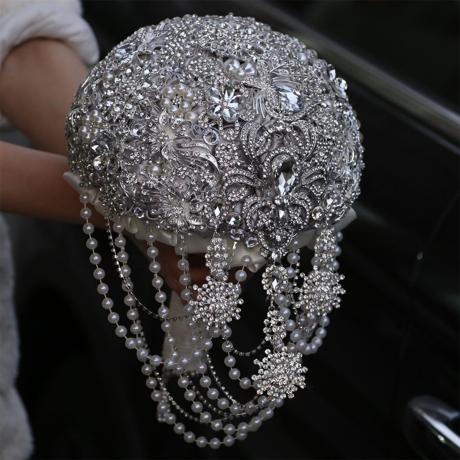 Bouquet Specification:7’’ mini round bouquet –– (sample,toss,bridesmaid,flower girl)8.5’’ small round bouquet –– (bridal,reception,quince años,prom)9.6’’ big round bouquet –– (bridal,reception,quince años,prom)Our Advantages:Each bouquet is made from top quality silk roses with dazzling jewelry, gathering around the central theme to emphasize their collective beauty. You will find the bouquet even more beautiful in person. Unlike mass-produced item, your bouquet has its own distinctive look and no two bouquets are ever identical due to the hand-made process. The bouquet's extraordinary beauty is a enchantment to your big day and truly make the once-in-a-lifetime event more memorable. It will surely impress your guests. Purchase silk bouquet well in advance, no worry about its wilting.Kind Note:1.Custom items usually take 2 weeks or longer to complete(depends on the complexity); Also need to add another 3 weeks for oversea shipping; To sum up it takes at least 35 days for you to receive your custom-made bouquets. Plan your time wisely to save unnecessary last minute stress.2.Matching corsage&boutonniere are also available, if you need any, please contact us for more detail. We have so many styles to match your wedding theme.3.Inch are approximate, we use centimeter as standard size, please allow some minor errors. Due to different display setting, please allow a slight color difference between photo with real product.