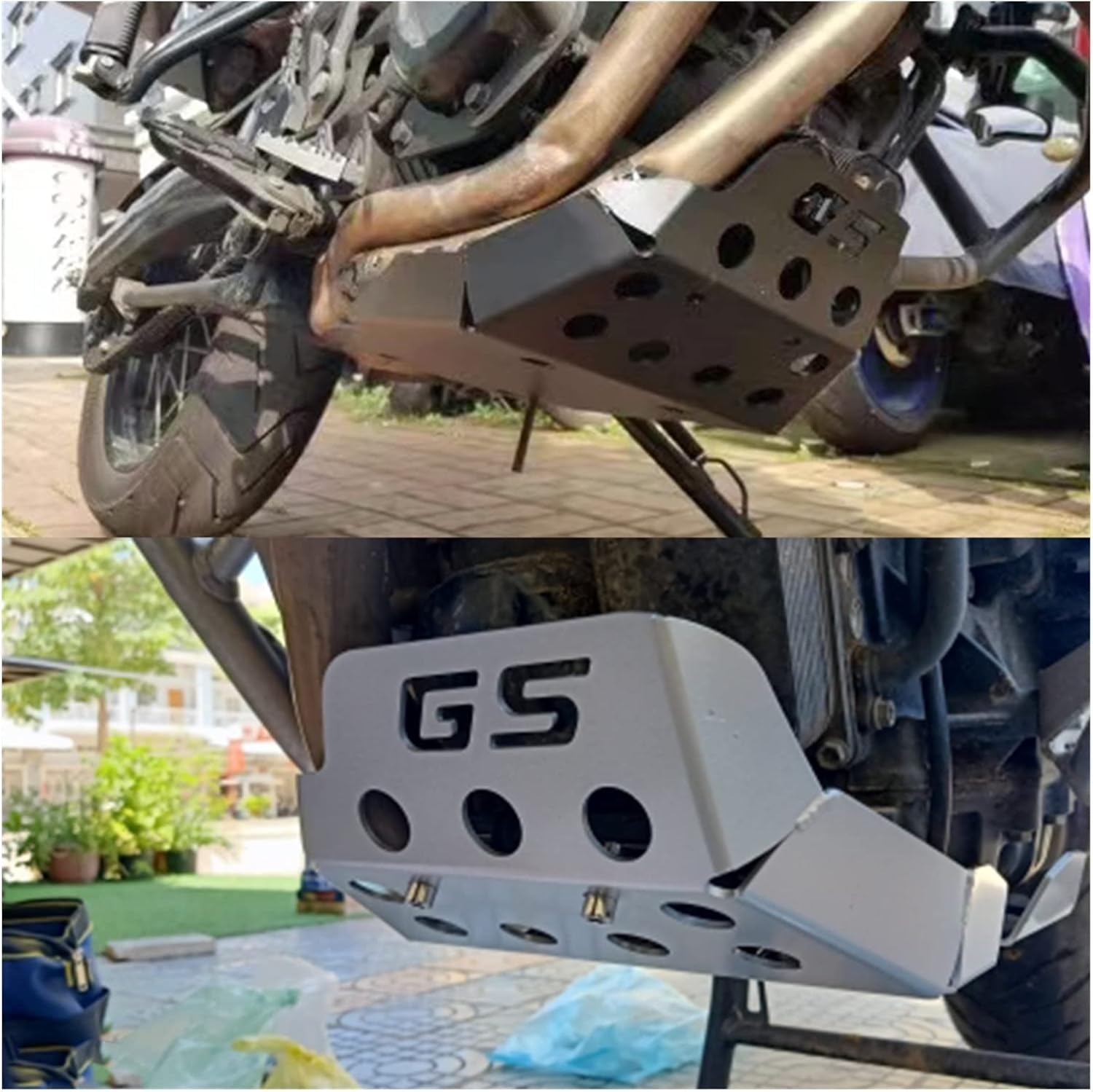 Superior quality and easy to install1, Even a sidewalkd can mean rough contact with the ground and can damage the engine housing. This skid plate protects the manifold and engine block from even the most violent ground contact or rock impact. skid plates not only make your bike look great, They also enhance the off-road-look. 2, Solid aluminium skid plate 3, 3-4mm thick aluminium plate 4, Precisely manufactured, adapted to fit the engine and exhaust system of each specific bikeFitment:Compatible with F650GS 2008-2013 Compatible with F700GS 2008-2017 Compatible with F800GS 2008-2017 Compatible with F800GS ADV All years