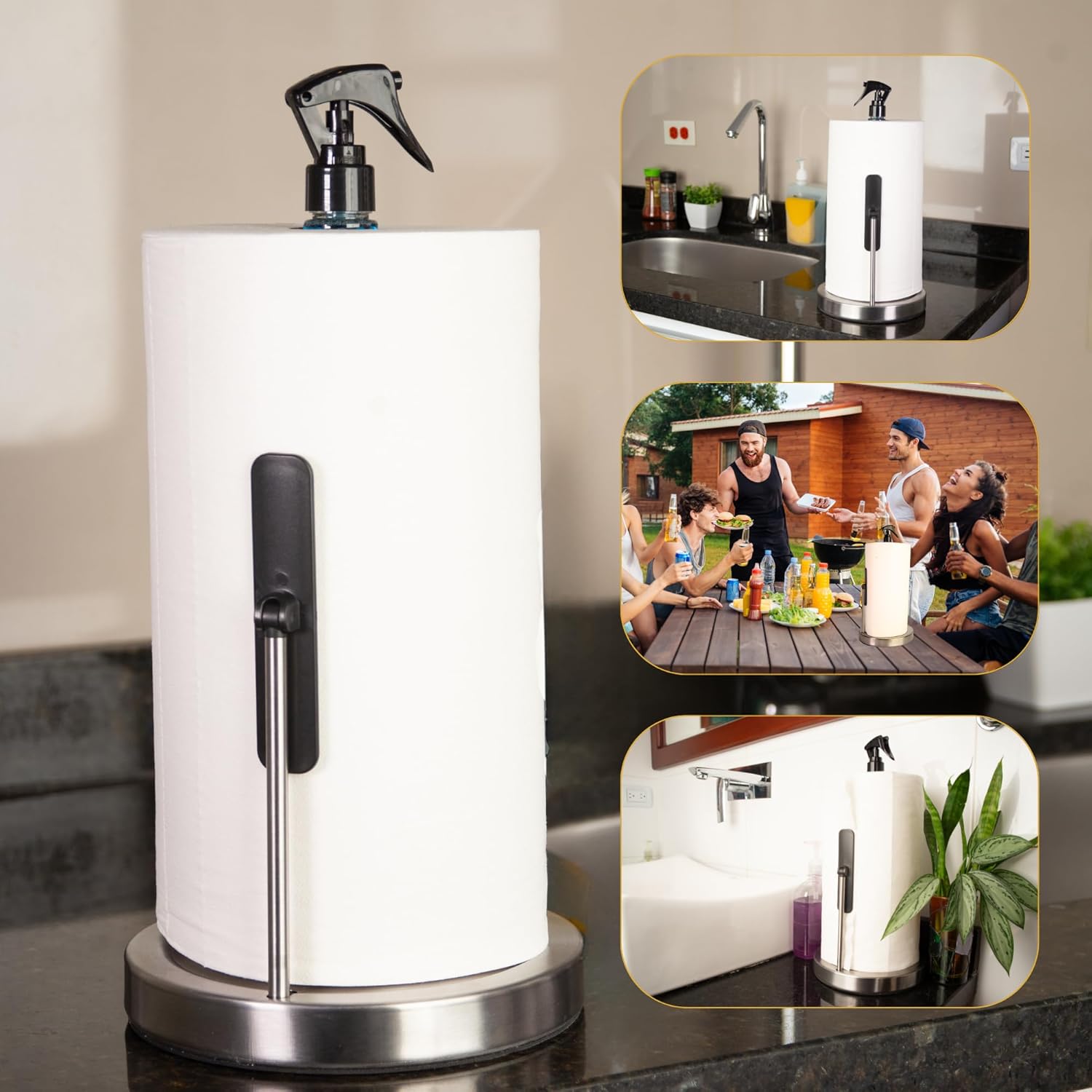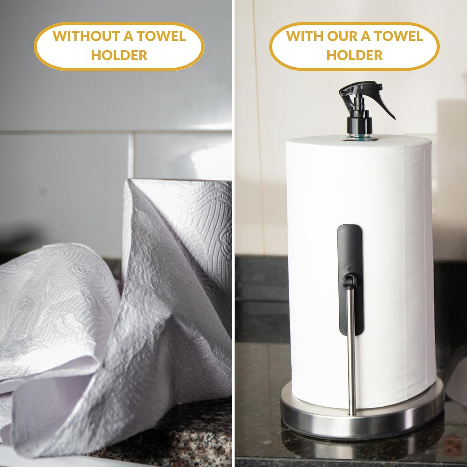 Introducing the Ultimate Kitchen Companion – Our Innovative Paper Towel Holder with Spray Bottle! Are you tired of fumbling around with loose paper towels, searching for the right cleaning solution, and dealing with messy countertops? Say goodbye to those hassles and hello to effortless, organized cleaning with our all-in-one solution. 🧼 Efficient and Hygienic Cleaning: Our Paper Towel Holder for Kitchen is designed to streamline your cleaning routine. It's not just a Towel Paper Holder for Kitchen; it's also a Paper Towel Dispenser for Kitchen. With an integrated paper towel pump, you can easily dispense just the right amount of paper towels, making it the perfect Paper Towel Holder for Large Rolls, and a convenient Paper Towels Dispenser for Kitchen to keep your space neat. 🌟 Multi-Functional Design: This Porta Papel Toalla (Spanish for paper towel holder) goes beyond ordinary holders. It's a Paper Towel Dispenser for Kitchen and a Paper Towel Rack Stand – all in one! No more searching for a separate kitchen towel dispenser or paper towel napkin holder. 💪 Built to Last: Designed to accommodate even Large Rolls of paper towels, this Paper Towel Stand Holder is built for durability and convenience. You'll love how it keeps everything tidy and within arm's reach. 👌 Sleek and Stylish: Elevate your kitchen's aesthetics with this modern and elegant Paper Towel Dispenser for Kitchen. It's not just a functional tool; it's a stylish addition to your kitchen decor. 📦 Everything You Need: Our Napkin and Paper Towel Holder is your one-stop solution for kitchen organization. Keep your paper towels and cleaning essentials in one place, so you're always ready for quick cleanups. Upgrade your kitchen and simplify your life with the best Paper Towel Holder with Spray Bottle on the market. Don't miss out on this opportunity to transform your cleaning routine. Order now and experience the difference