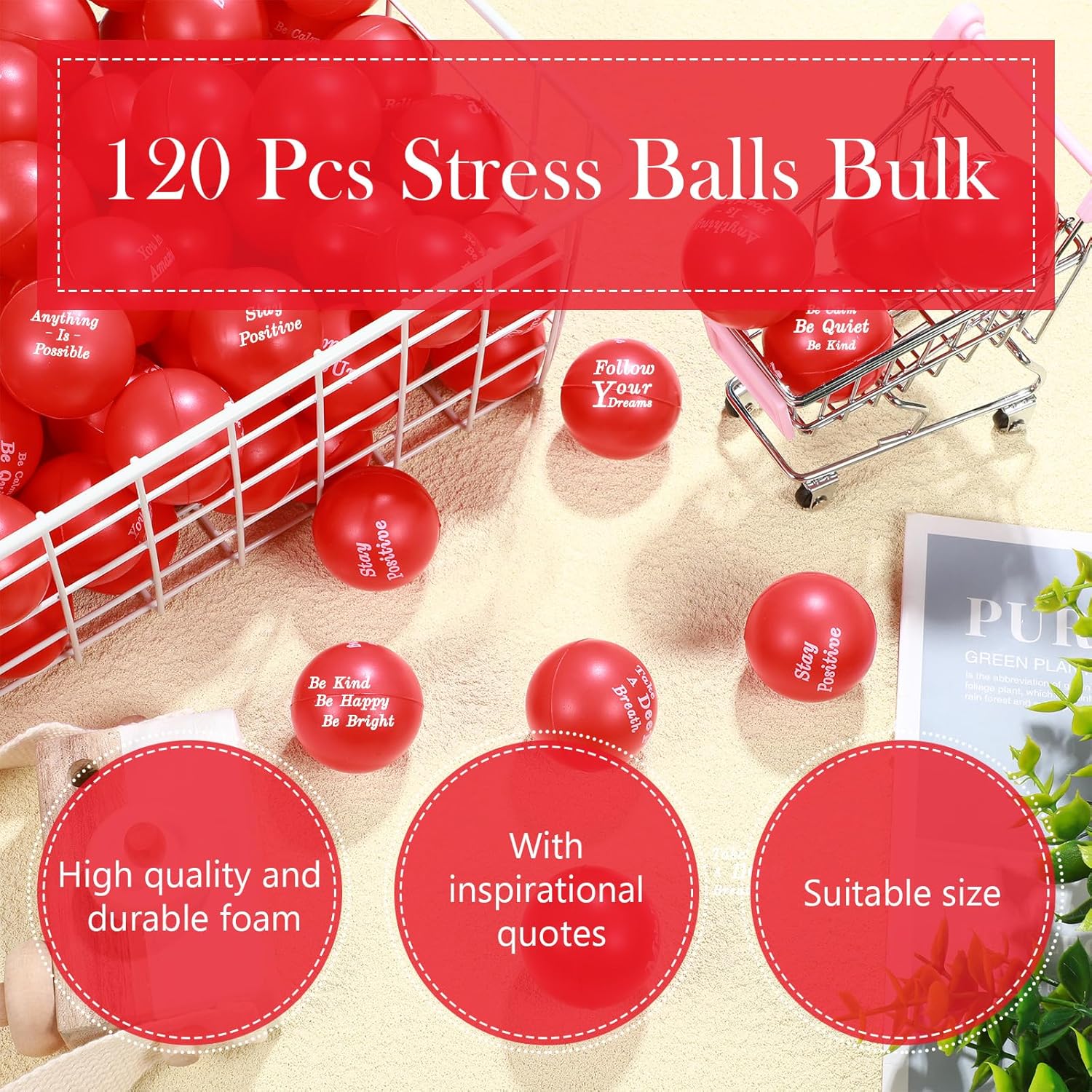 | Included Components | 120 x Inspirational stress balls |