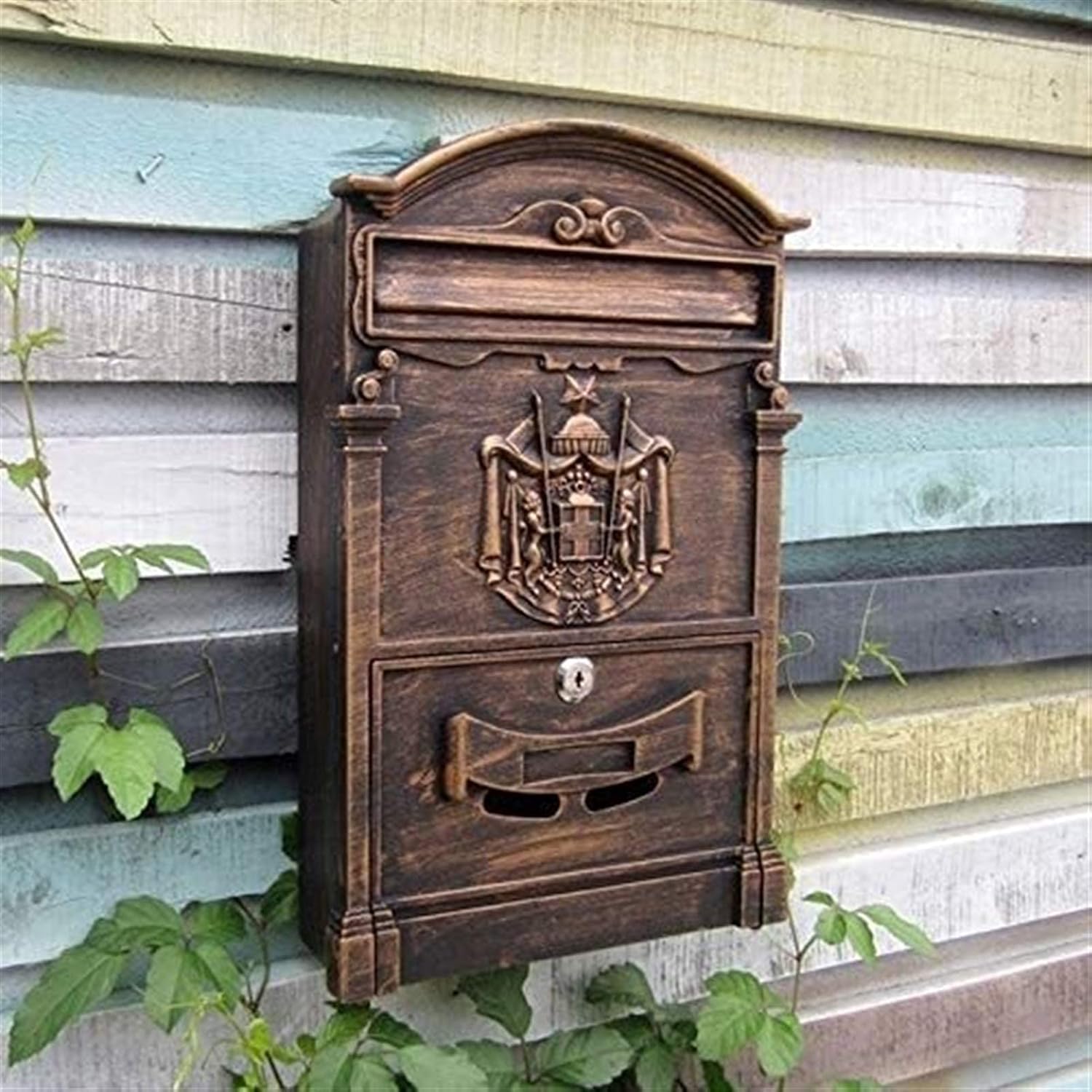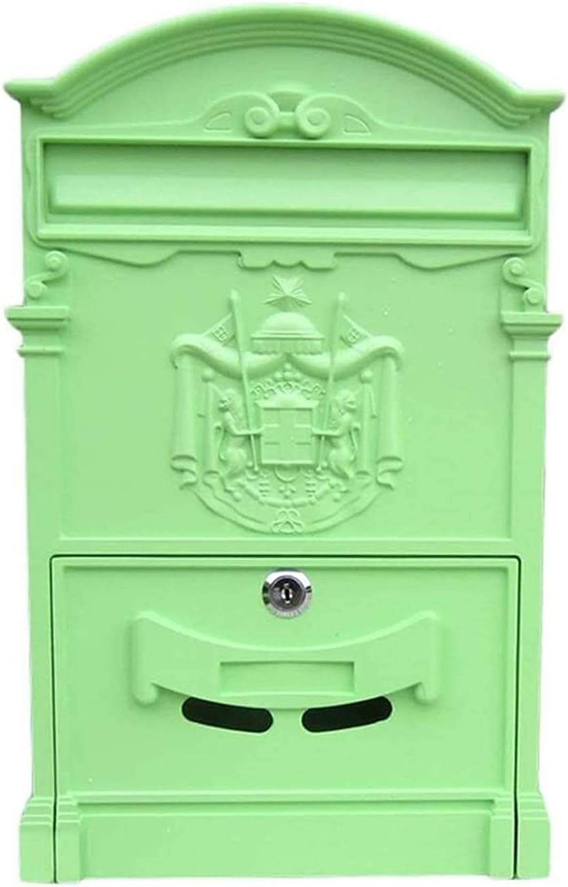 Our mailbox can easily hold keys, ballots, mail, money or checks. In addition to being used as a drop box or office mail, this box can also be used as an office suggestion box. - This wall mailbox is a nostalgic eye-catcher with a charming design to adorn your wall. - Specifications: Material: Cast aluminium Size: approx 26 x 9 x 41 cm Weight: approx 2 kg Applicable to: letters, postcards, flyers Occasion: family, office, garden, corridor, outdoor, indoor - Feature: Convenient and practical - very suitable for your family to receive letters, notes, newspapers, magazines Sturdy material - corrosion resistant, durable Easy to install - parts with pre-drilled fixing holes for easy and safe installation on walls, sheds, gates or garages - Package Content: 1 x Letterbox Prompt: 1. Only the mailbox is sold, and does not contain any decorative items involved in the picture. 2. Manually measure the size and weight, the measurement error within 1-2 cm is normal, please understand! 3. Due to the lighting effects, the brightnesscontrast settings of the display, etc., the color of the picture will be slightly different from the actual one.