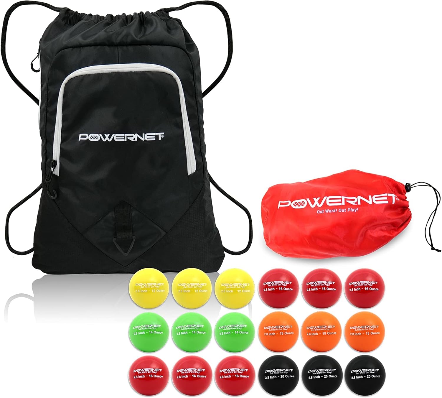 PowerNet 2.8" Baseball Weighted Training Balls Bundle with Backpack, Complete Set Heavy Ball 18 Pack 12 to 20 oz, Build Strength and Muscle