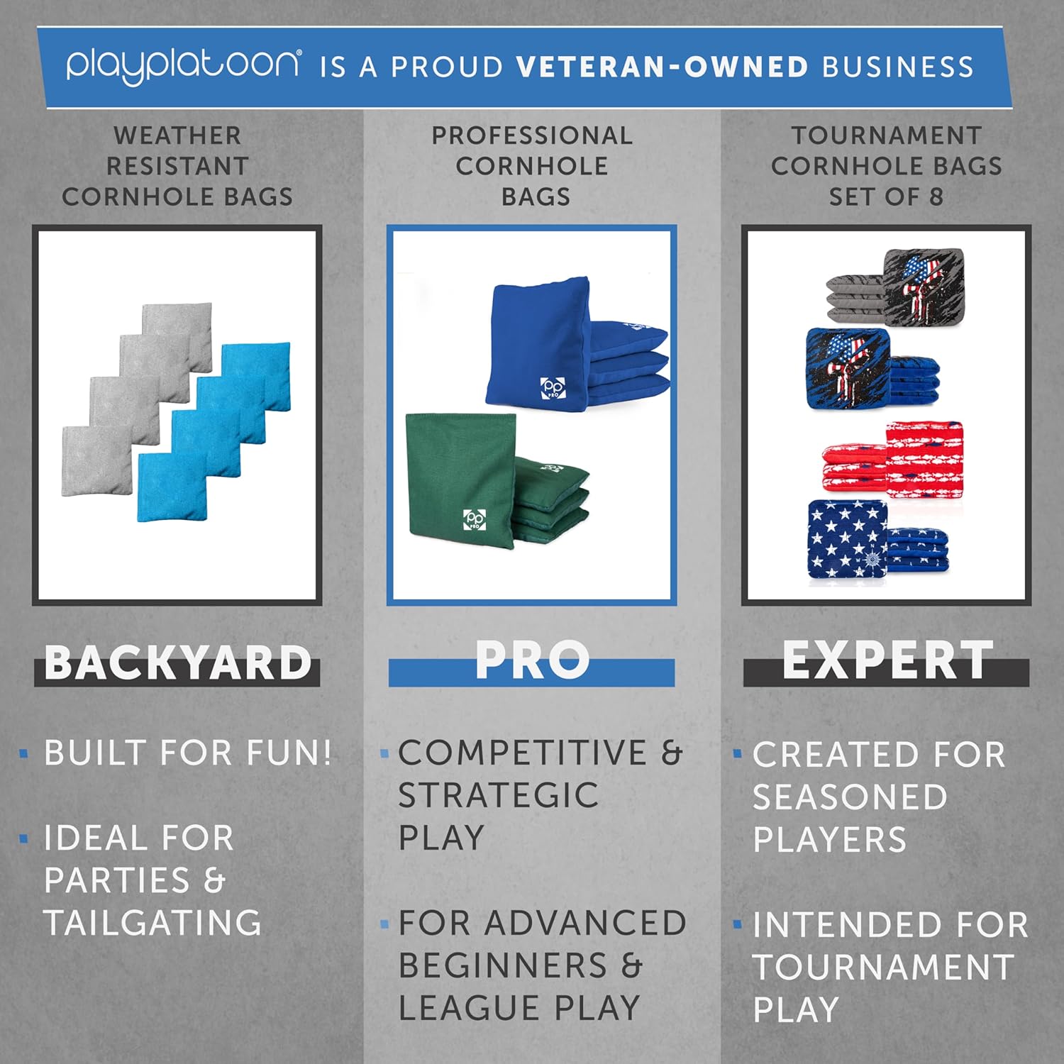 | Set Name | Play Platoon Cornhole Bags Professional Set (8 Bags + 2 Boards) |