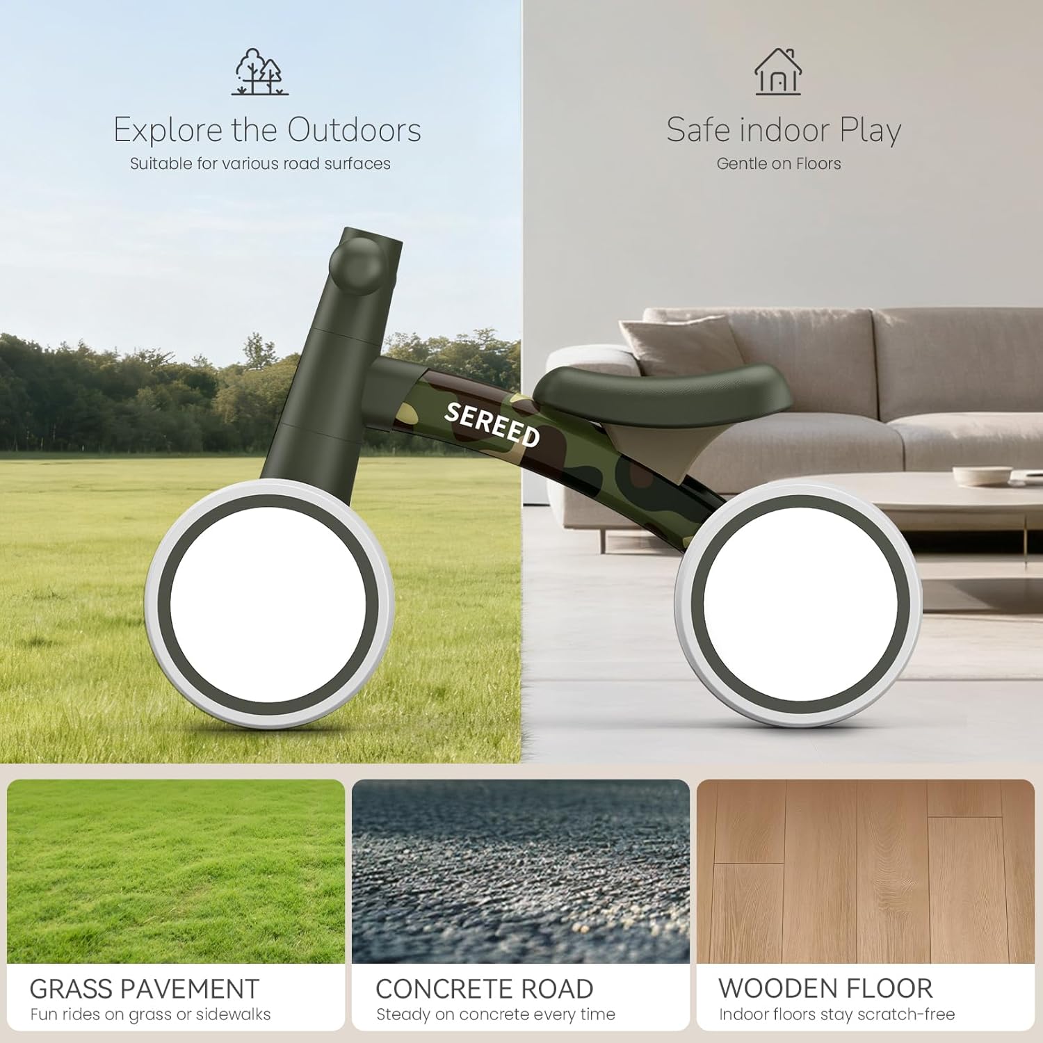 SEREED Baby Balance Bike for 1 Year Old Boys Girls 12-24 Month Toddler Balance Bike, 4 Wheels Toddler First Bike, First Birthday Gifts