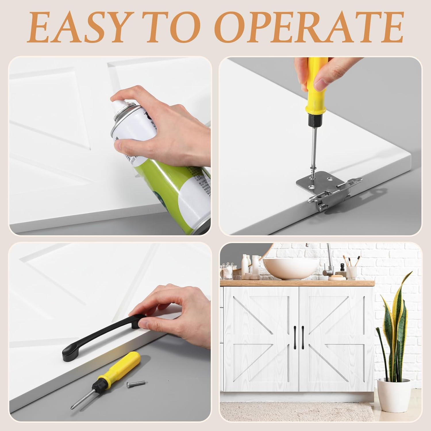 | Included Components | 2 x Cabinet door handles, 2 x Unfinished kitchen cabinet door replacement, 4 x Cabinet door hinges |