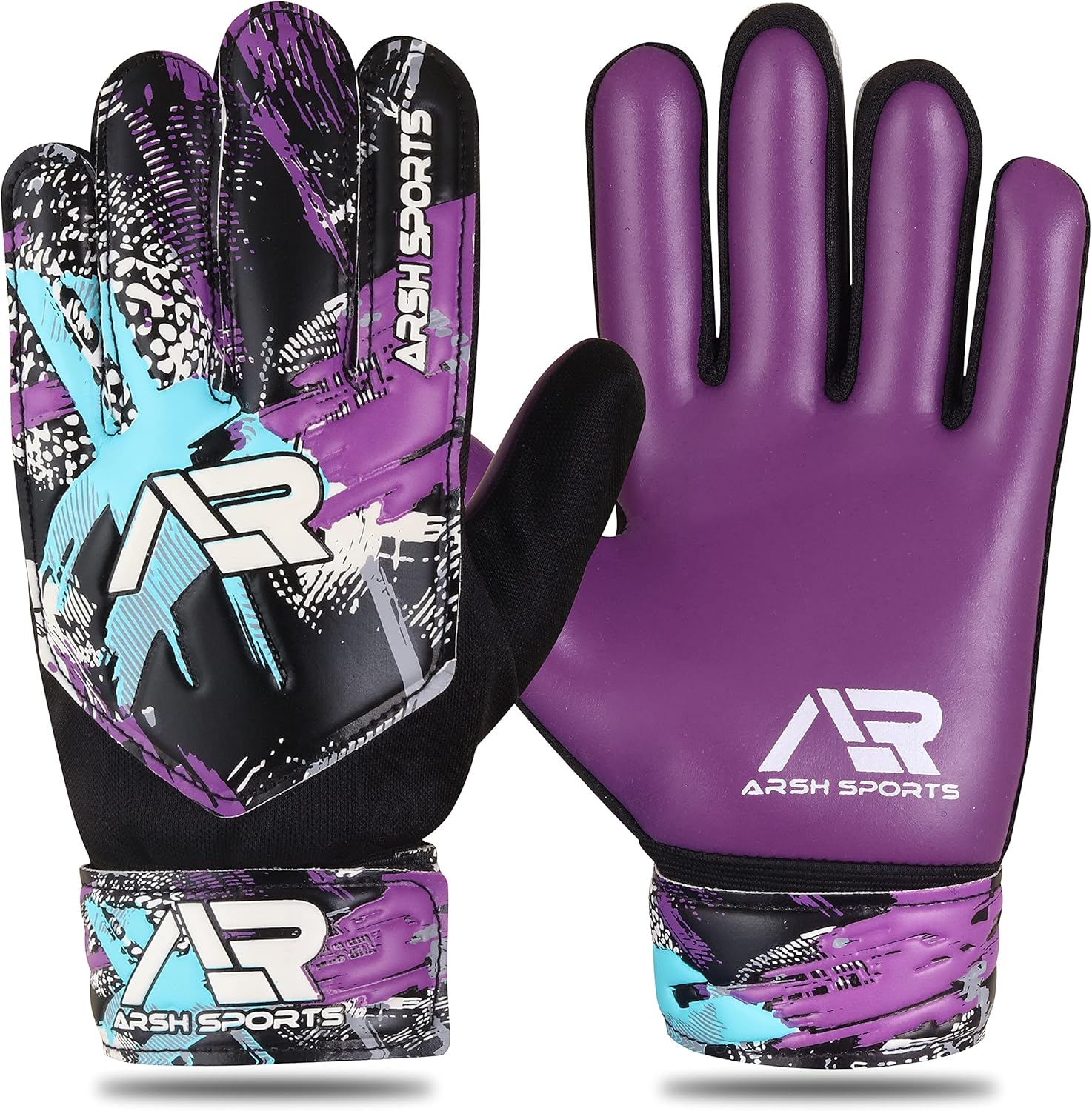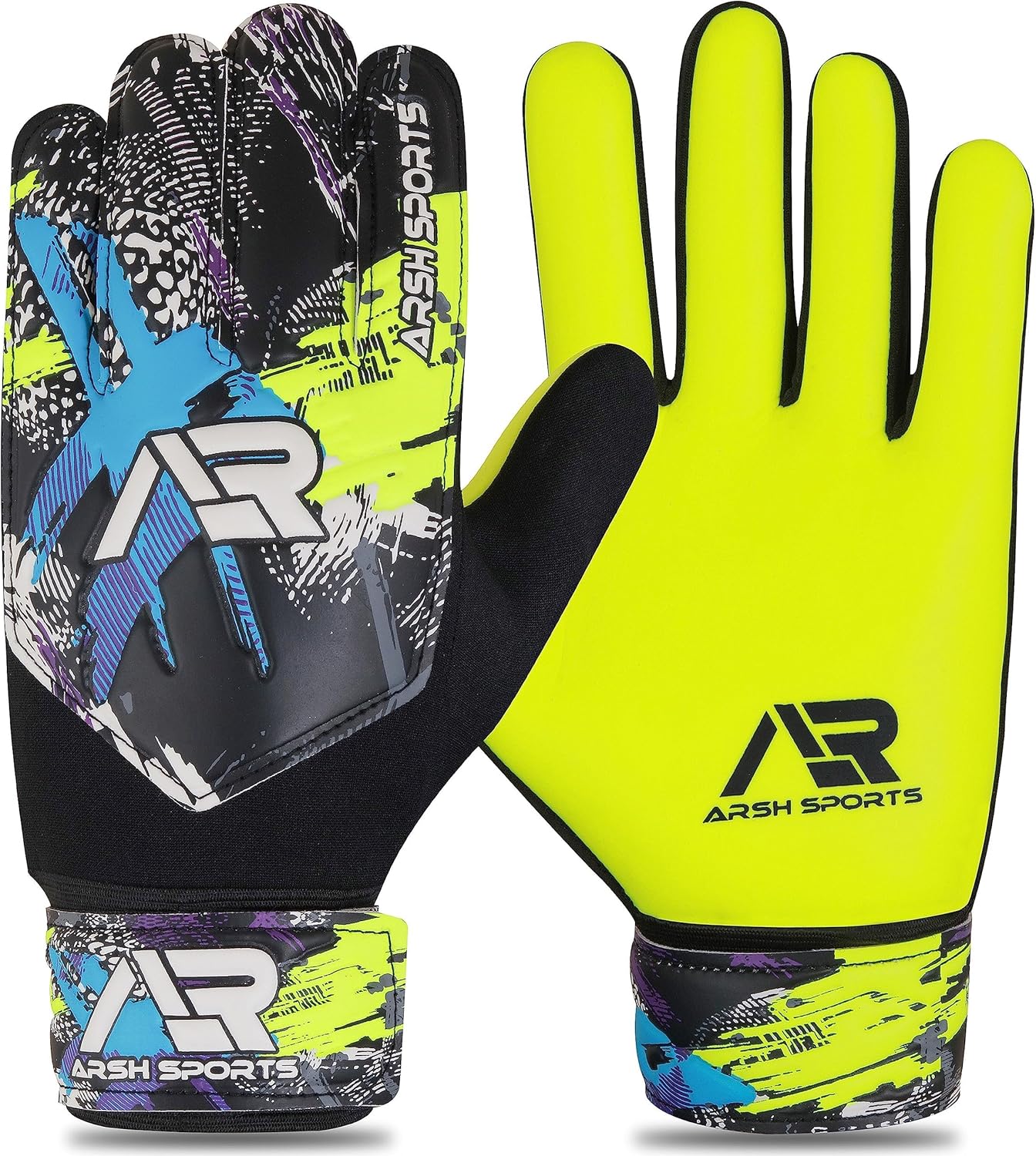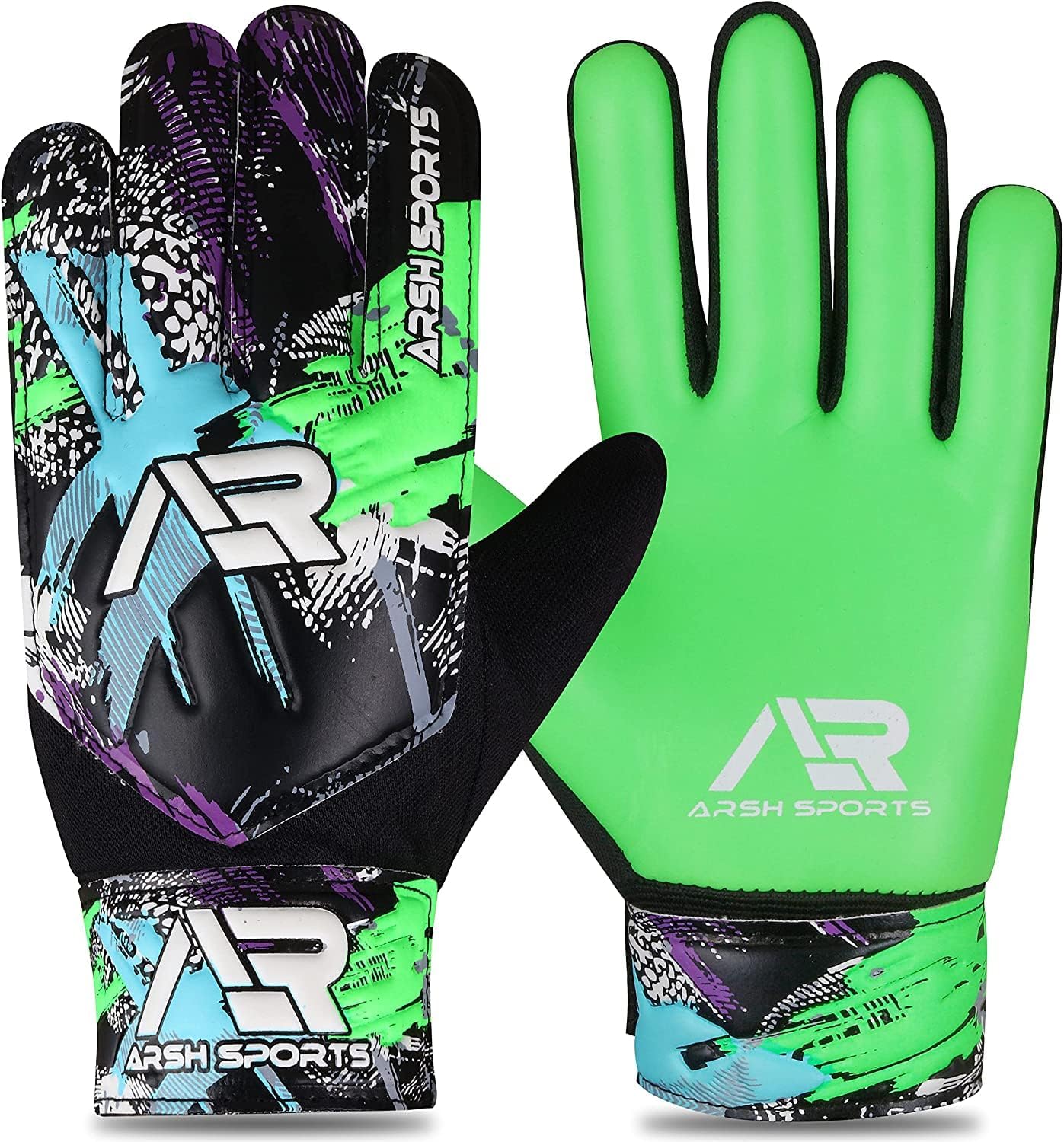 Arsh Sports Football goalie gloves adult | kids Soccer Goalie Gloves for Kids Boys Children Youth kids Football Gloves with 4mm Latex Anti-Slip Palm Finger Spine Protection having Exclusive 3D Embossed Design Over Double Wrap For more Protection in Goalkeeping # Features: PERFECT FOR ALL WEATHER: The Football glove can withstand in all-weather and used around the year. # BREATHABLE AIR-MESH: The air-mesh fabric fit on the finger side and top hand side of the goalkeeper gloves kids that provides excellent breathability and protect your hands from sweating. # COMFORTABLE: The double wrap-over goal keeper gloves wrist keeps your hand more comfortable while playing. #Stylish Design: Arsh Sports soccer gloves goalkeeper men has a unique design with Premium Printing and Logo Embossed on it that is eye catching and best visible in dark place. Latex on palm of soccer goalkeeper gloves for Kids makes more grips while catching football # Durable & Comfortable: These kids soccer gloves for kids are durable with study stitches. Premium latex on palm makes it comfortable and reliable in hot & cold climate. The goal keeper's Glove has a double sewing technology that make a strong connection between Goalie fingers. The double stitch help to prevent keeper gloves from tearing even hard training and make it last long. Being made from high quality composite materials of EVA and latex, soccer gloves goalkeeper youth protects the palm.The Football Glove has a double sewing technology that make a strong connection between Goalie fingers.# Strong Grip: Arsh Sports goalie gloves youth soccer are made up of high quality composite materials of EVA and latex Foam. Palm area of soccer gloves goalkeeper adult with latex provides high viscosity and reduces slipping level that may help to improve your grip in matches. ✔ #Package Included: 1 x Pair Arsh Sports kids goalie gloves soccer pair for kids, Adults ,Boys & youth ✔ Suitable For: # Football Training #Match Practice # Football Matches # Practice Sessions