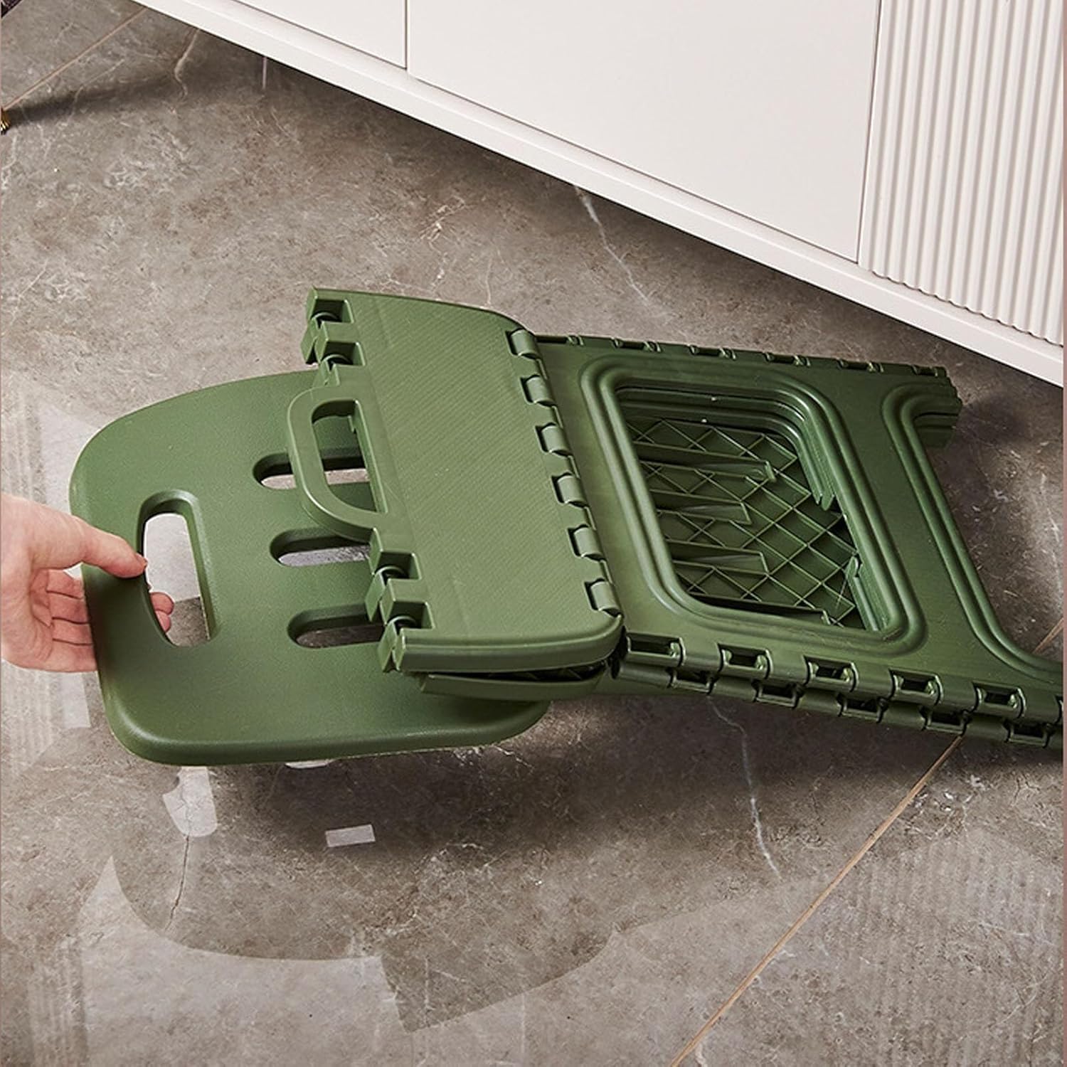 Step stools are especially suitable for small apartments. No need to search for or carry tall ladders; lightweight step stools are portable and readily available, solving the pain point of temporary climbing needs.Product Type: Folding Step StoolMaterial: PPColor: White, GreenSize: Two different backrest sizes availableMade of thick, high-density plastic for high stability; resists cracking or deformation even with frequent outdoor use; reusableErgonomic handles allow for easy folding and carrying; unfolds in seconds to become a stable step or seat; quickly stores in tight spaces under the kitchen sinkPP material is wipe-clean after outdoor use; folds compactly, easily fitting into a backpack, car trunk, or camping gear; perfect for road trips, family getaways, or outings where space-saving and cleanliness are key. Can be used as a camping stool, outdoor fishing stool, or picnic accessory; its base can be used on smooth grass or uneven terrain, and its lightweight design allows for quick movement between indoor and outdoor spaces.Package Included:1 x Folding StoolStep stools can be used to wipe windows, light fixtures, air conditioners, and clean hard-to-reach areas such as the top of cabinets. They can also serve as temporary shoe-changing stools, bathroom step stools, bar stools, or children's seats.