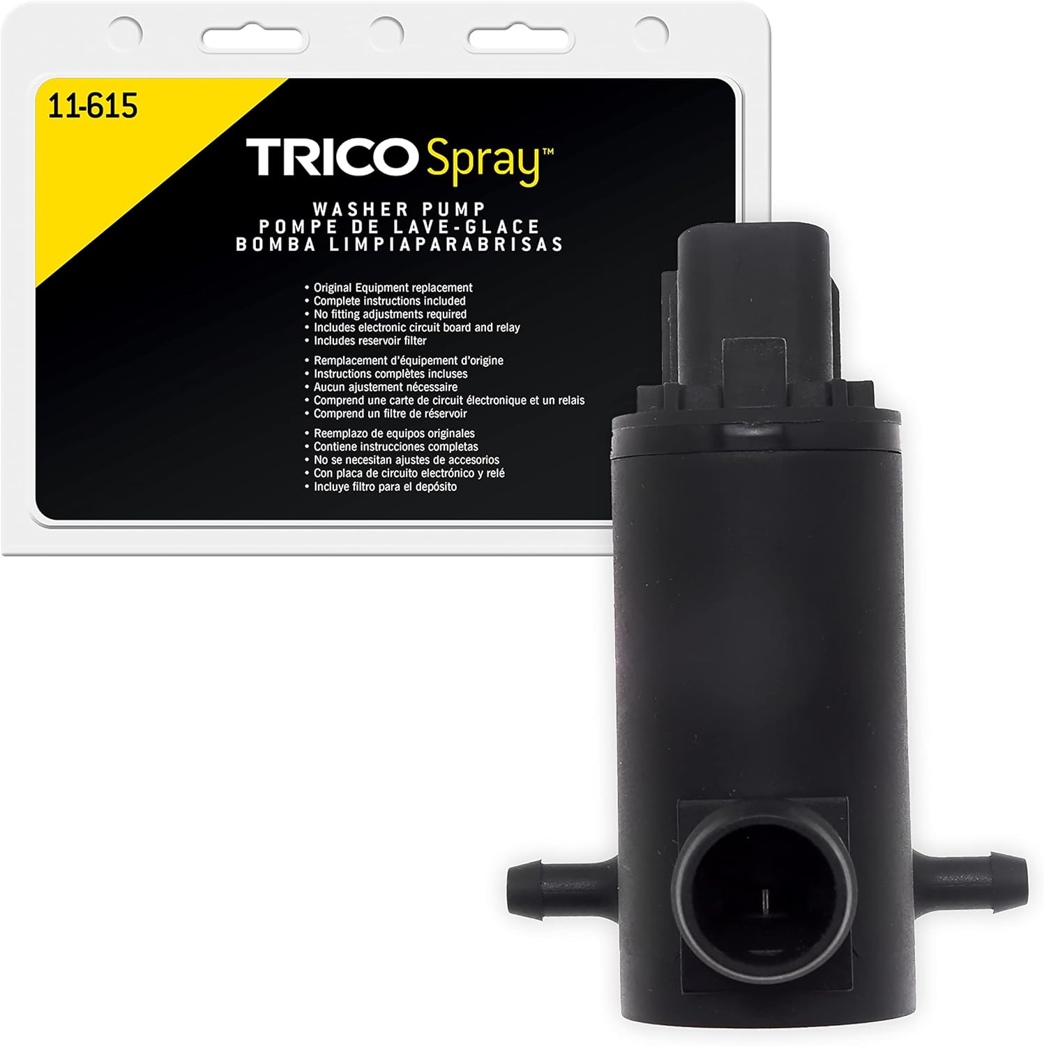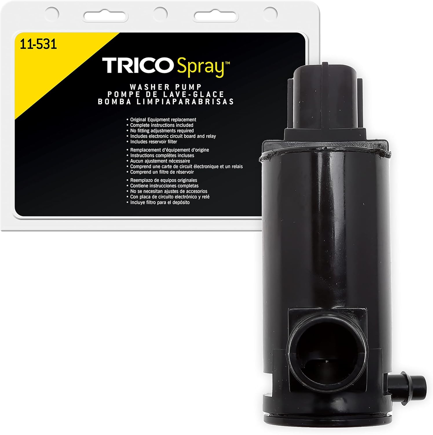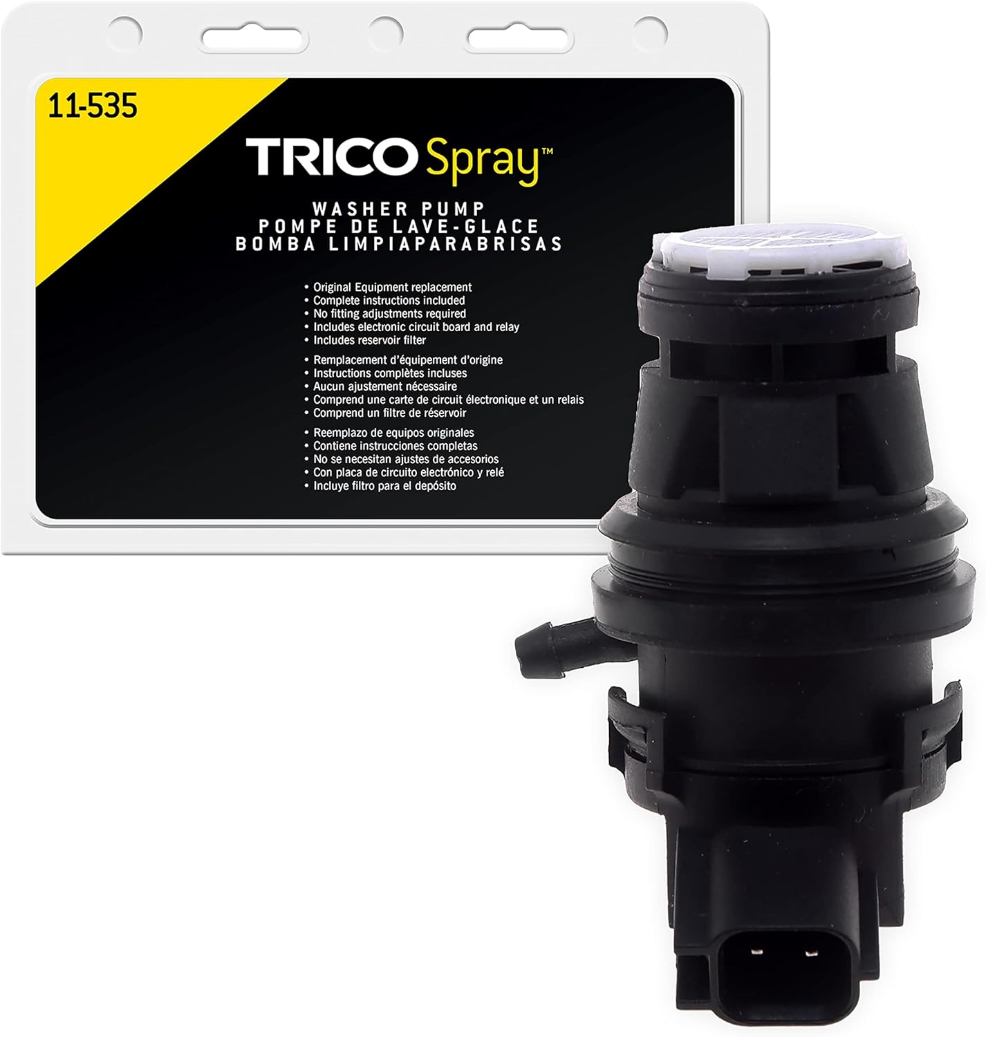 TRICO® offers a universal washer pump, a reservoir and pump kit and a full line of washer pumps to help make windshield washer repairs quick and easy. With no cam to align, holes to drill, or other fitting adjustments required, TRICO washer pumps are easy to install.