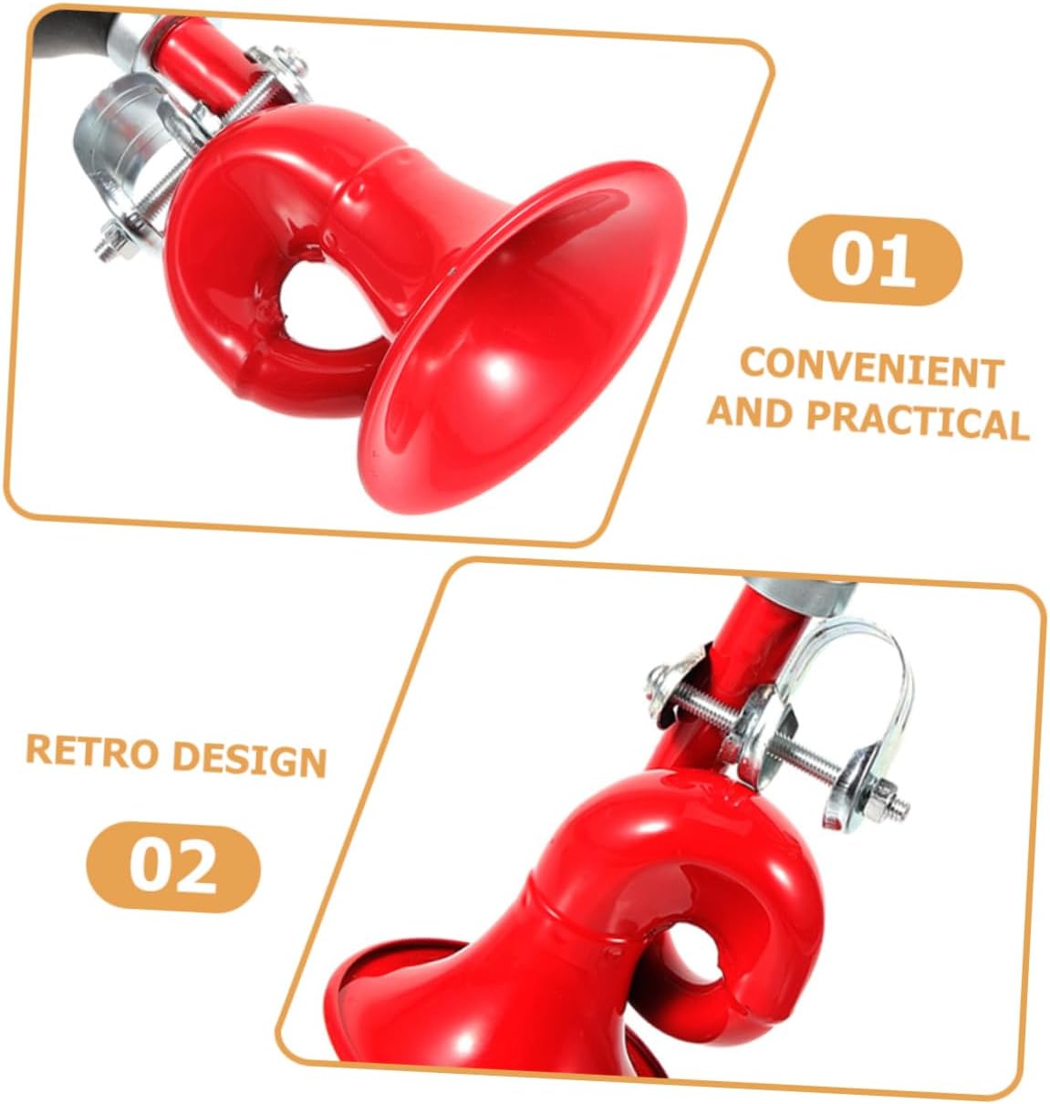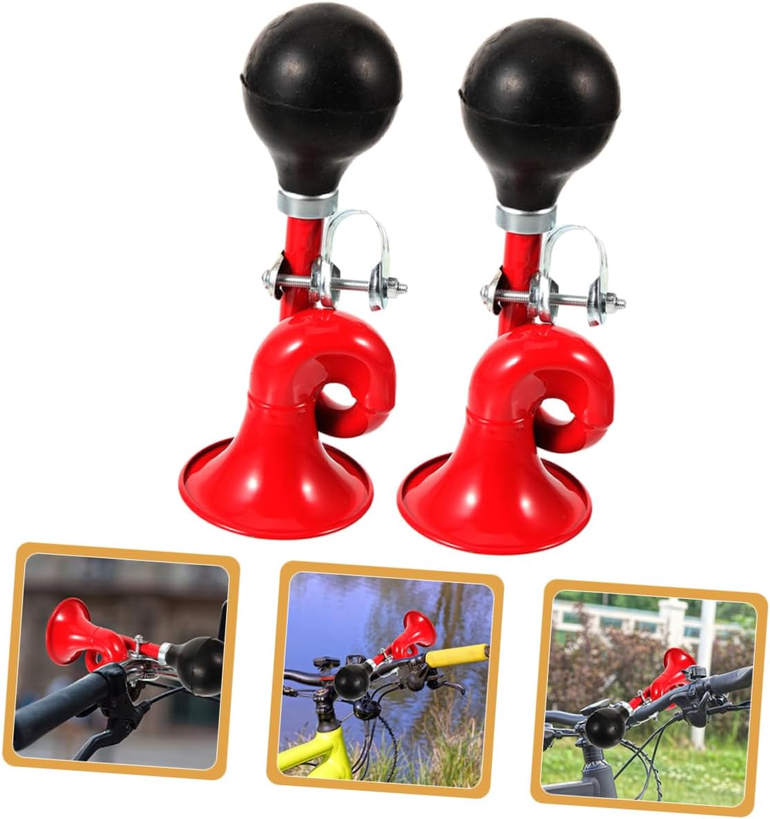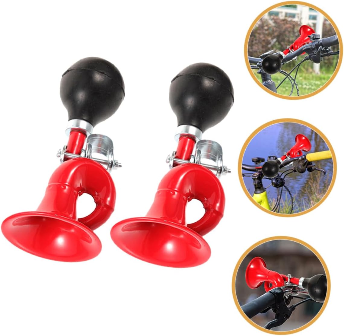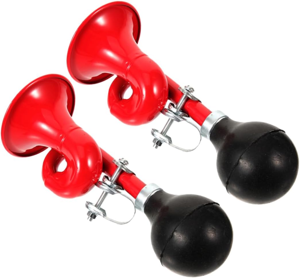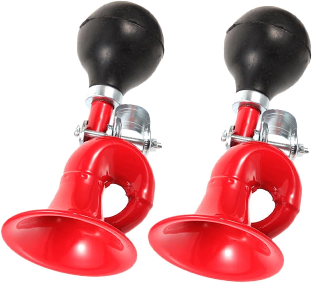 Package List 2 x Bike Horns Features -Size:16.00X8.00X7.50cm/6.29X3.14X2.95in crisp sound bike horn -Color:Red bike bell -Material:Aluminum alloy, leather bell -Suitable for road vehicles, no tools are required for installation and disassembly, which is convenient and quick bike horn for adults. -The bike bell is made from good aluminum alloy and leather material, provides bike bells. -The bike bell is suitable for mountain bike and road bikes Loud horns can attract the attention of others and alert others to your arrival at a distance from you bike horn. -Can make a clear and loud sound, the ringtone is loud and crisp, easy to remind pedestrians ring. -Easy to install, the use position does not hinder the brake It is very easy to use lights.Goods Descriptionsqueeze bell The bike an essential accessory for outdoor riding.squeeze bike horn Made of aluminum alloy and leather materials, and .bike horn Our horn are loud and crisp to ensure your safety.bike ringer Louder horn can attract the attention of others and alert others to your arrival at a distance from you.lightweight cycling horn It can not only decorate your bike, but also provide safety warnings during the journey.bike bugle horn For a new cyclist, this is a great