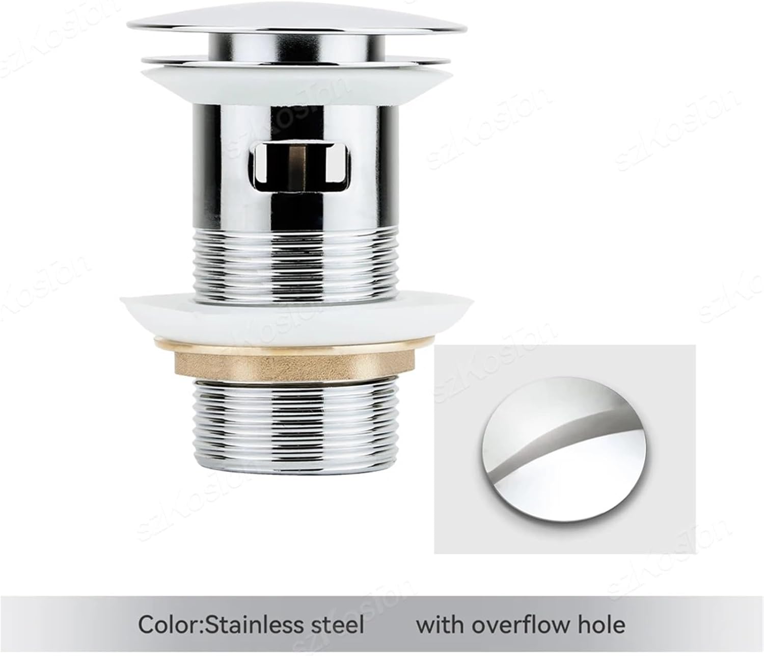 Drain StrainersSpecification:Material: Brass / Stainless steel body+Brass pop-up movementHeight: 77mmLid Width: 66mmColor: Chrome Silver,Matte Black,Titanium,Brushed GoldInstallation Requirements: Opening 41-52mm Hole BasinSurface Treatment : PolishedStyle : Push Down Pop-UpSize : othersApplication : BASINMaterial : BrassFloor Drain Method : Gravity Flushing