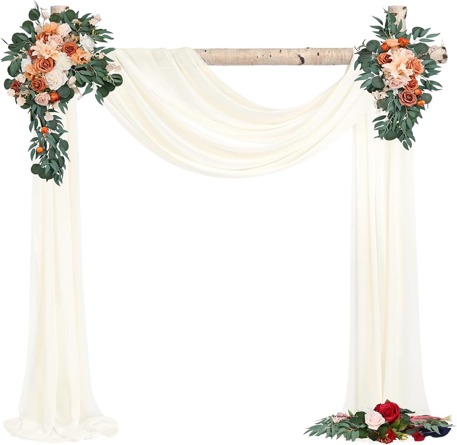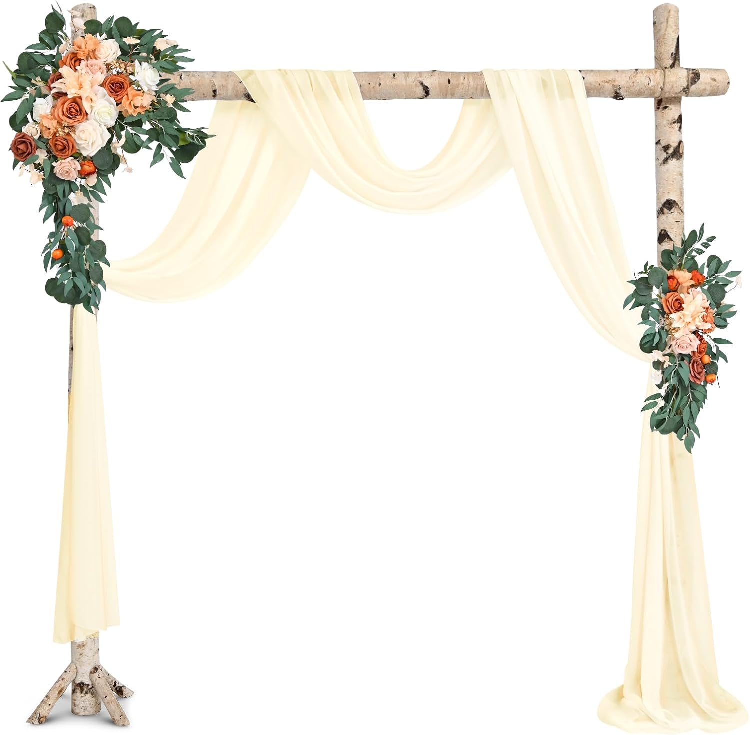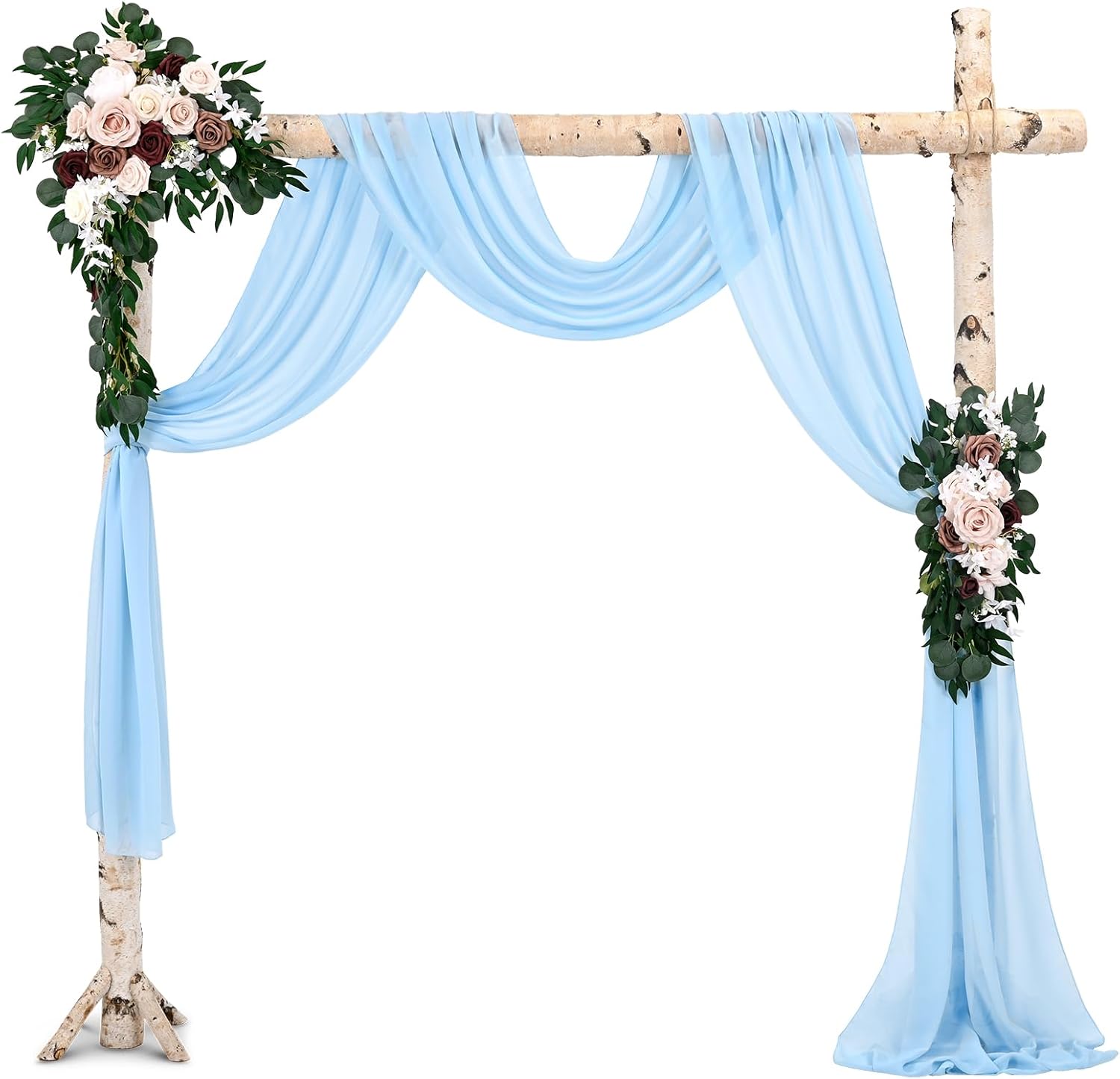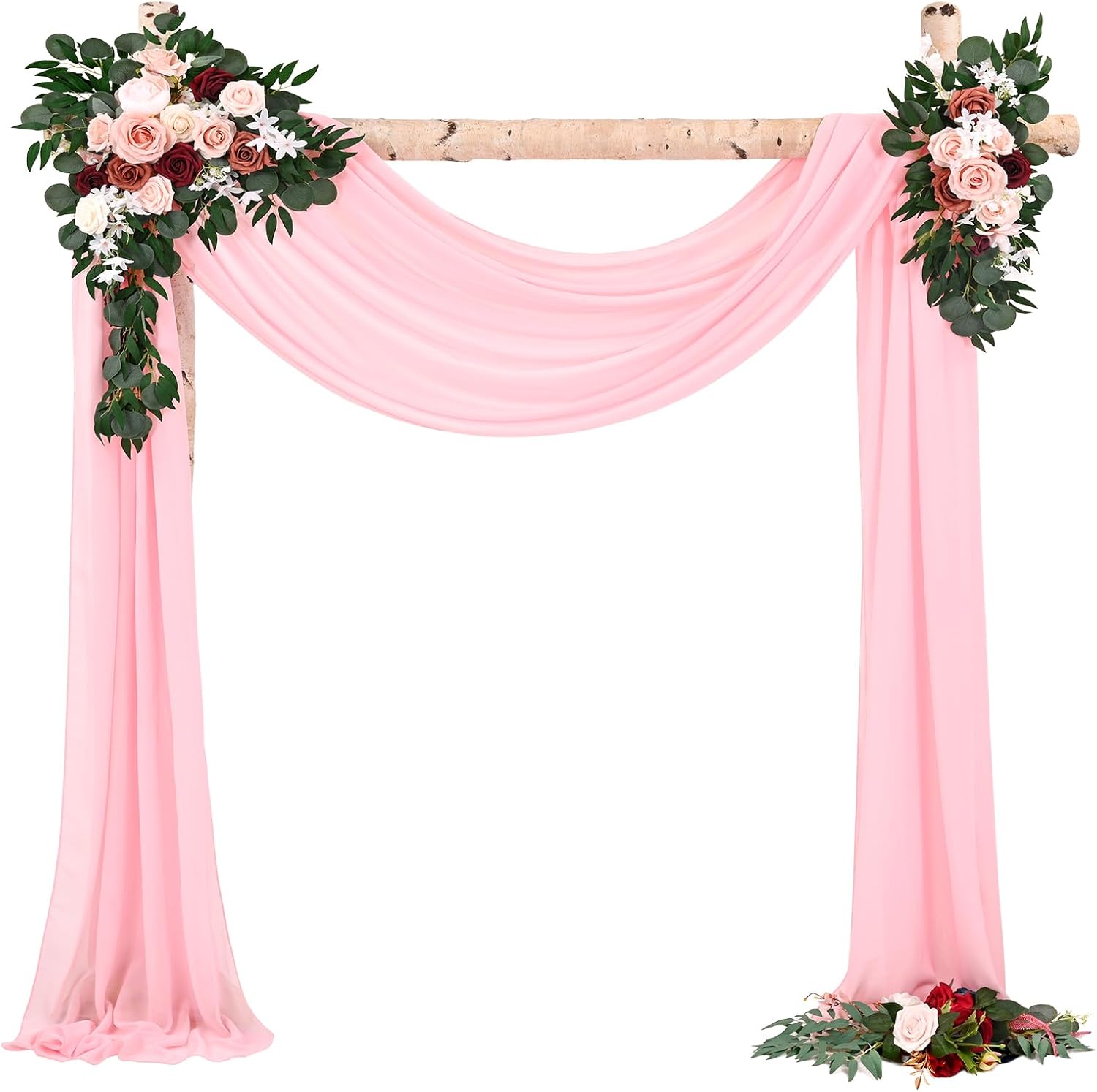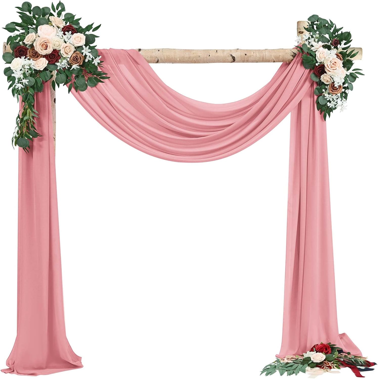 White Wedding Arch DrapesQuantity: Set of 8 panels, each panel is 28 inches wide by 18 feet long.Fits for 5-7ft arch/arbor.Soft Material: 100% chiffon fabricEasy Draping or Hanging Arch DrapesSoft to the touch, solid color design, natural sagging, elegant and fashionable.Foldable for storage without creases.Washable and reusable.Customer Questions & AnswersQ: Is the draping fabrics each 6 yards for each of the the colors? Or 6 yards altogether?A: Each panel measures 28" wide and 6 yards long.Q:How do I wash the chiffon arch drapes? What fabric type is this?A: This wedding arches for ceremony made of polyester chiffon fabric, soft and comfortable.Machine washable in laundry bag or hand wash in cold water with mild detergent.Do not twist.Hanging dry.The sheer wedding arch drapery can be ironed at low temperature.Q:Could these wedding arch chiffon fabric be used as table runners?A: Yes, this sheer fabric wedding drapes can be used for wedding arch backdrop, party table runner, chair sash decorations, wedding aisle runner, photography backdrop, bridal shower decorations, canapy bed decor, room curtains,etc.Q: Is color true to picture?A: The real object is consistent with the picture.However, the color of each monitor display will still be a little color difference, please focus on the real thing.Remind:Manual measurement, there will be 1-2cm error, please understand.Our swag for wedding arch suitable for indoor and outdoor decorations.Showgeous wedding arch drapes is the new choose for your event's backdrop decor!Sheer fabric wedding arch drapes ideal for wedding ceremony, birthday, party, Christmas, wedding arbor decorations and so on.