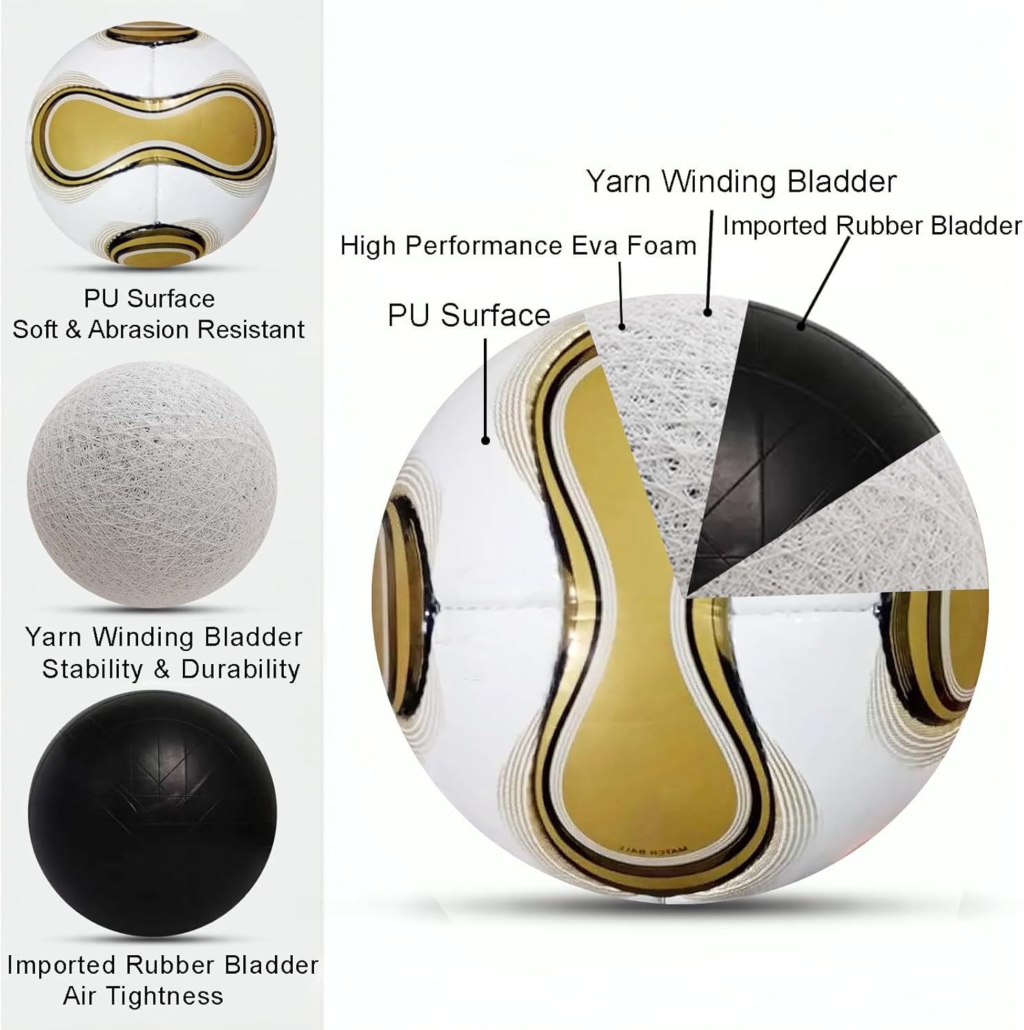 Golden Match Ball | World Cup Final Soccer Ball 2006 Germany – Size 5Experience the excitement of the 2006 World Cup Final with this premium replica soccer ball. Crafted with high-quality Rexine materials, this ball is designed for durability, consistent performance, and an authentic feel.Key Features:⚽ Replica of the 2006 World Cup Final Soccer Ball – Designed to capture the look and feel of the legendary tournament ball.🔹 Premium Rexine Construction – High-quality cover for durability and long-lasting use.💨 Reinforced Bladder – Ensures excellent air retention for extended play.🏆 Reliable Performance – Designed for smooth flight, accurate movement, and consistent bounce.🌟 Ideal for Matches & Training – Crafted to deliver a great playing experience.Important Notes:This is a replica of the 2006 World Cup Final soccer ball, not an original.The ball ships deflated and requires inflation before use.Product color may vary slightly due to lighting, angle, and screen settings.Your Feedback Matters!We strive to provide high-quality products. Your feedback helps us continue to improve and offer the best soccer gear.