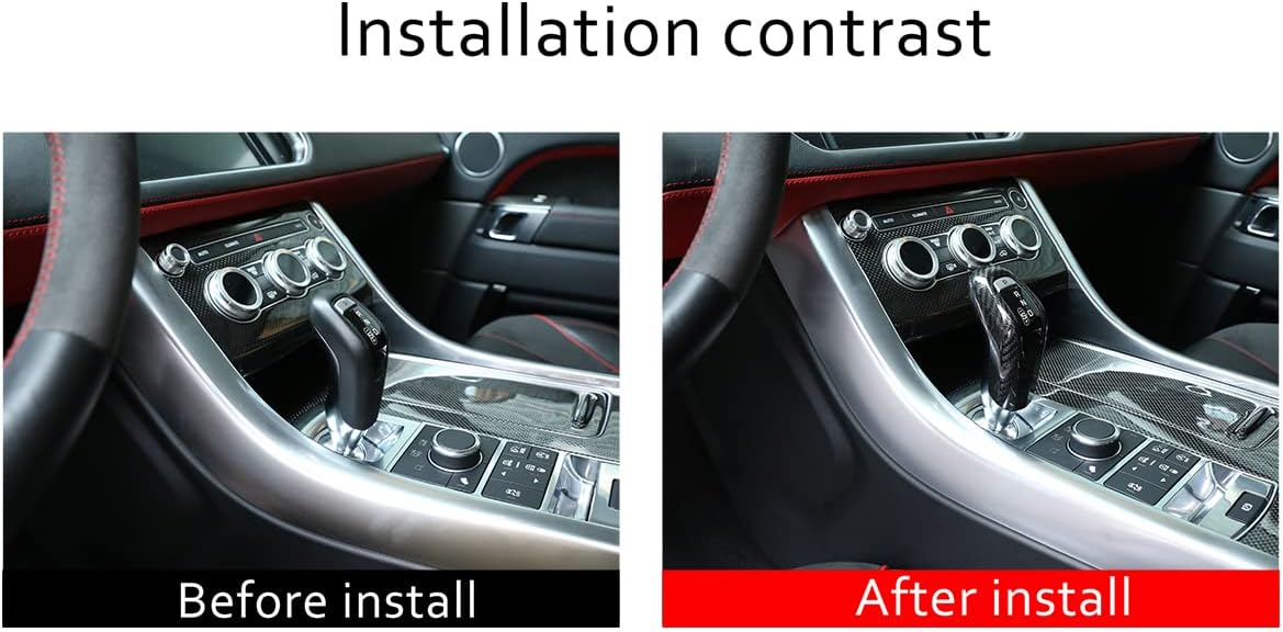 Features - Material: Made of High Quality 100% Real Carbon Fiber - Paint Baking and UV Treated on surface - Easy installation with double-sided tape - Color:Black/Red - Please confirm your car model is as same as the picture before submitting your order - NOTE- In case it fall off for some car models, just add some tape and put the cover back on,then they will work perfectly Description Item type: Auto Interior accessories Installation method: 1) Clean the surface, keep dry and clean. 2) Paste and install. (there is 3M auto adhesive glue in the trim back) 3) Please press hard especially on the edges at least 2 minutes after installing. 4) Using hair dryer (hot air blowing) in cold weather. 5) Please keep away from water and keep dry after been installed within 72 hours/3 days. Package include: 1Pc Gear Shift Knob Head Cover
